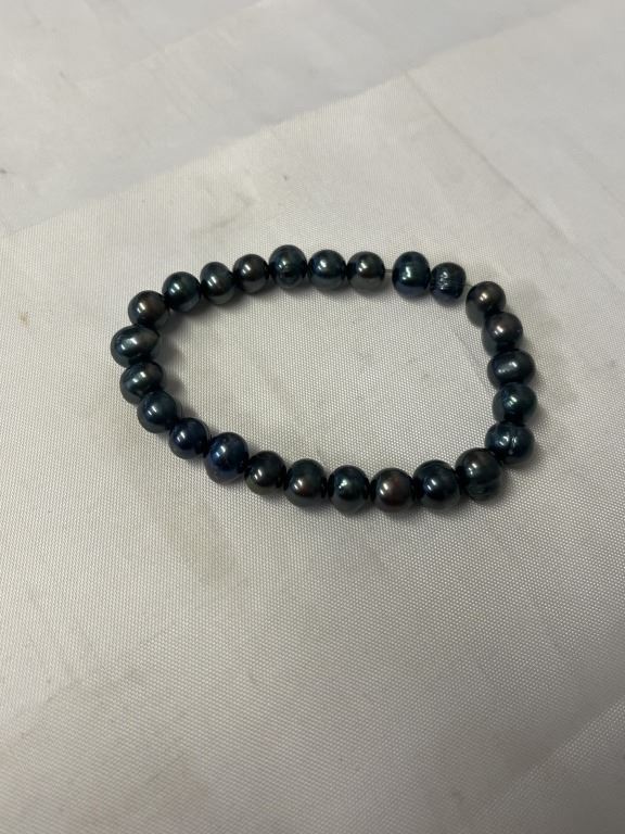 DARK BLUE CULTURED FRESH WATER PEARLS STRETCH BRACELET