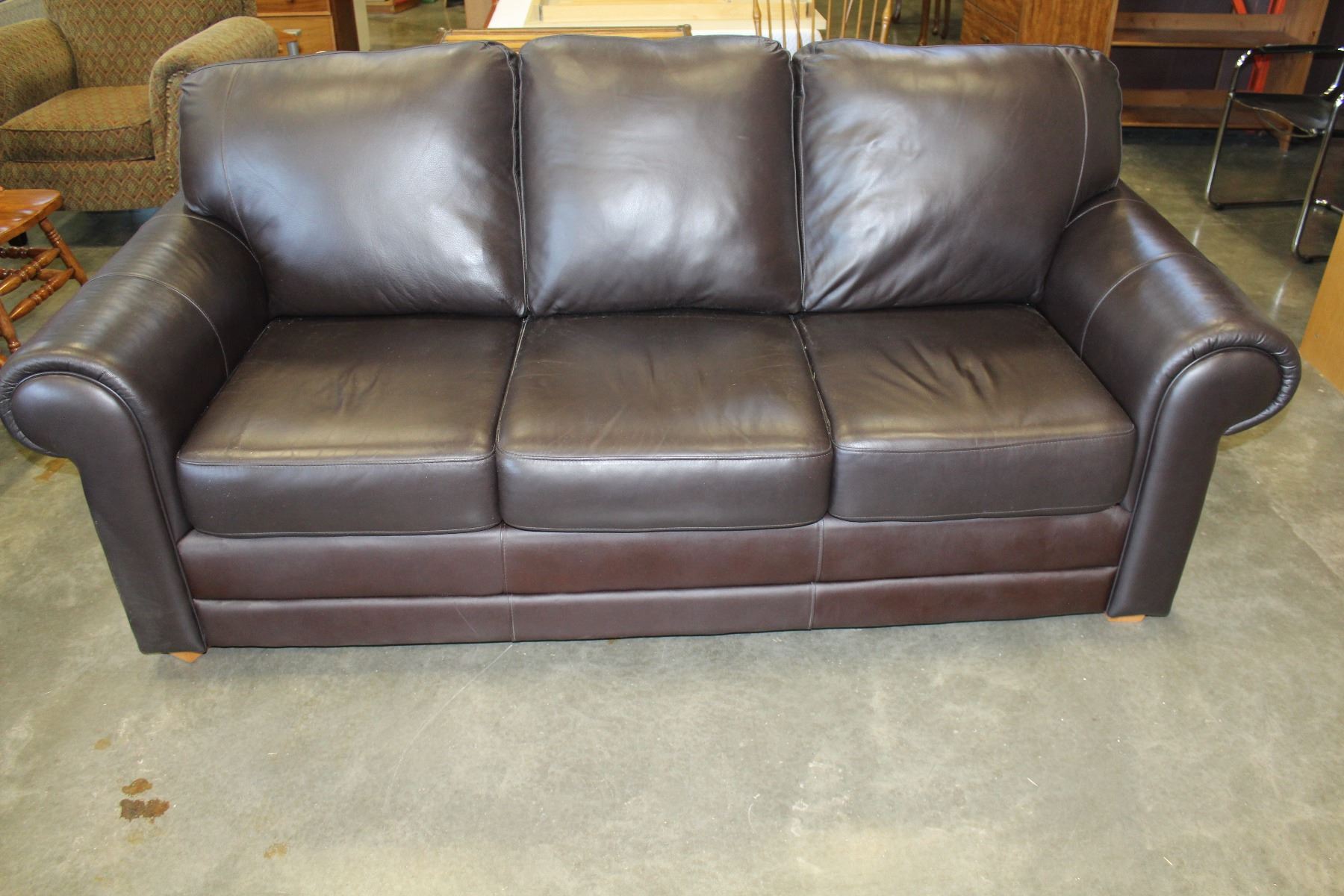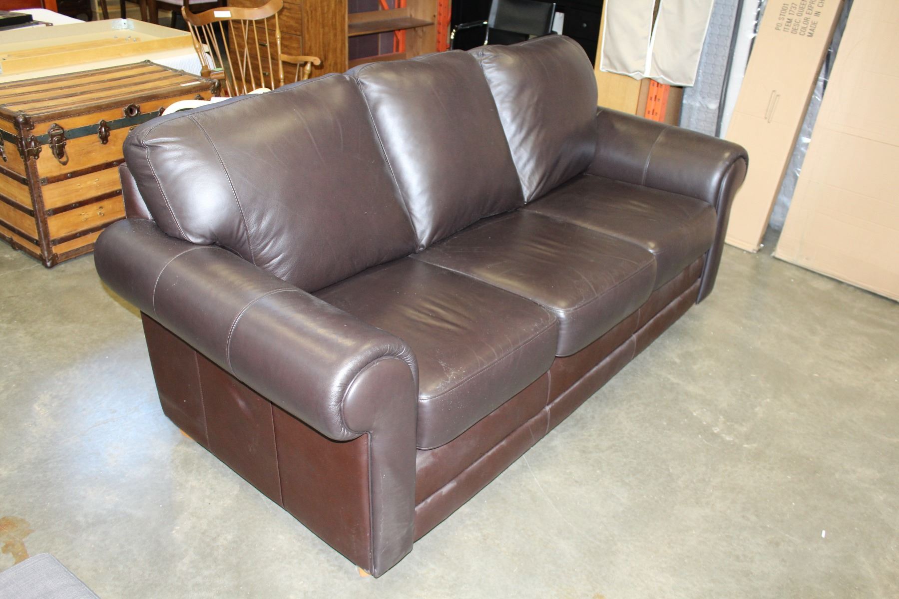 DARK BROWN LEATHER ROLLED ARM SOFA