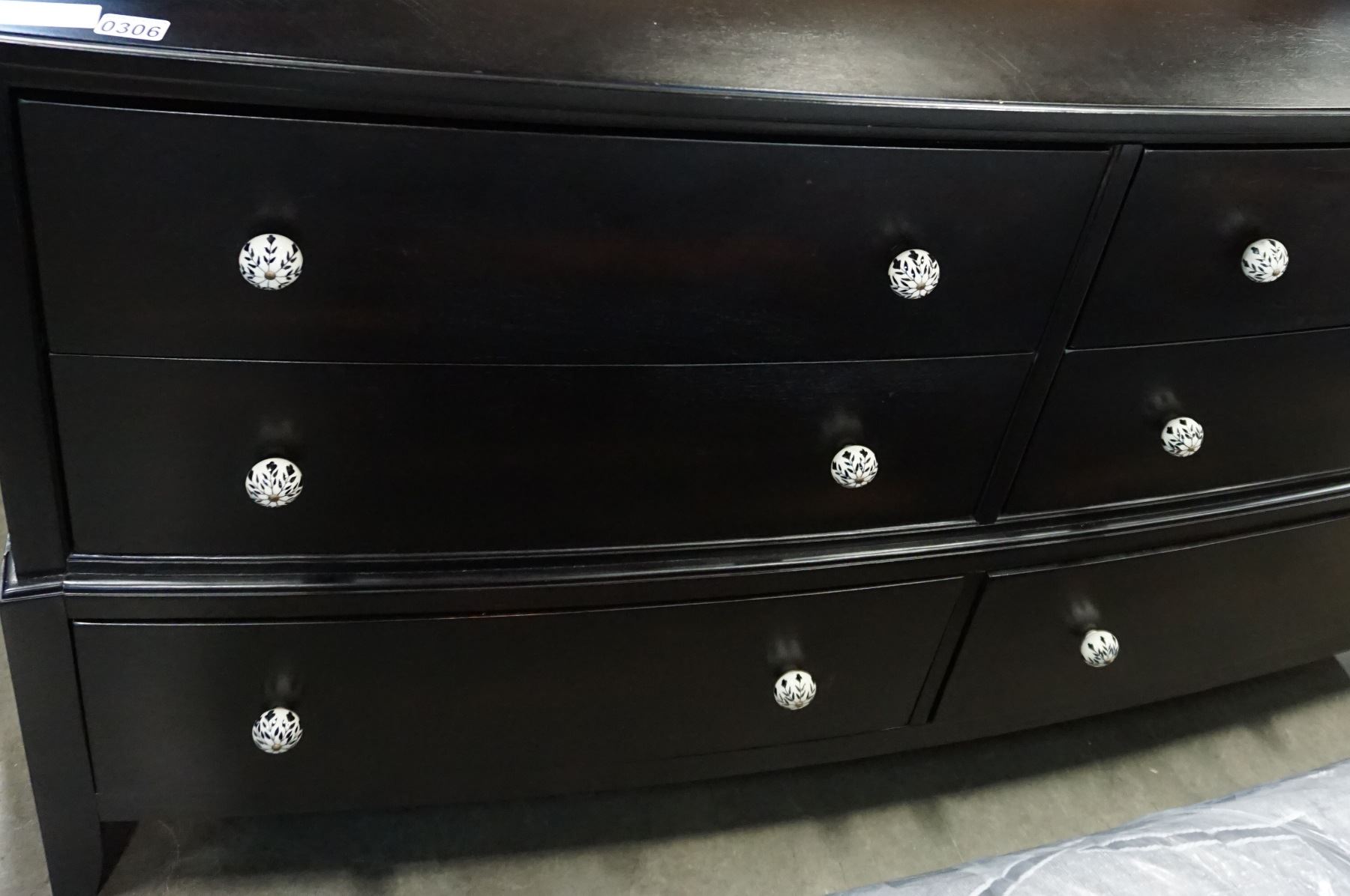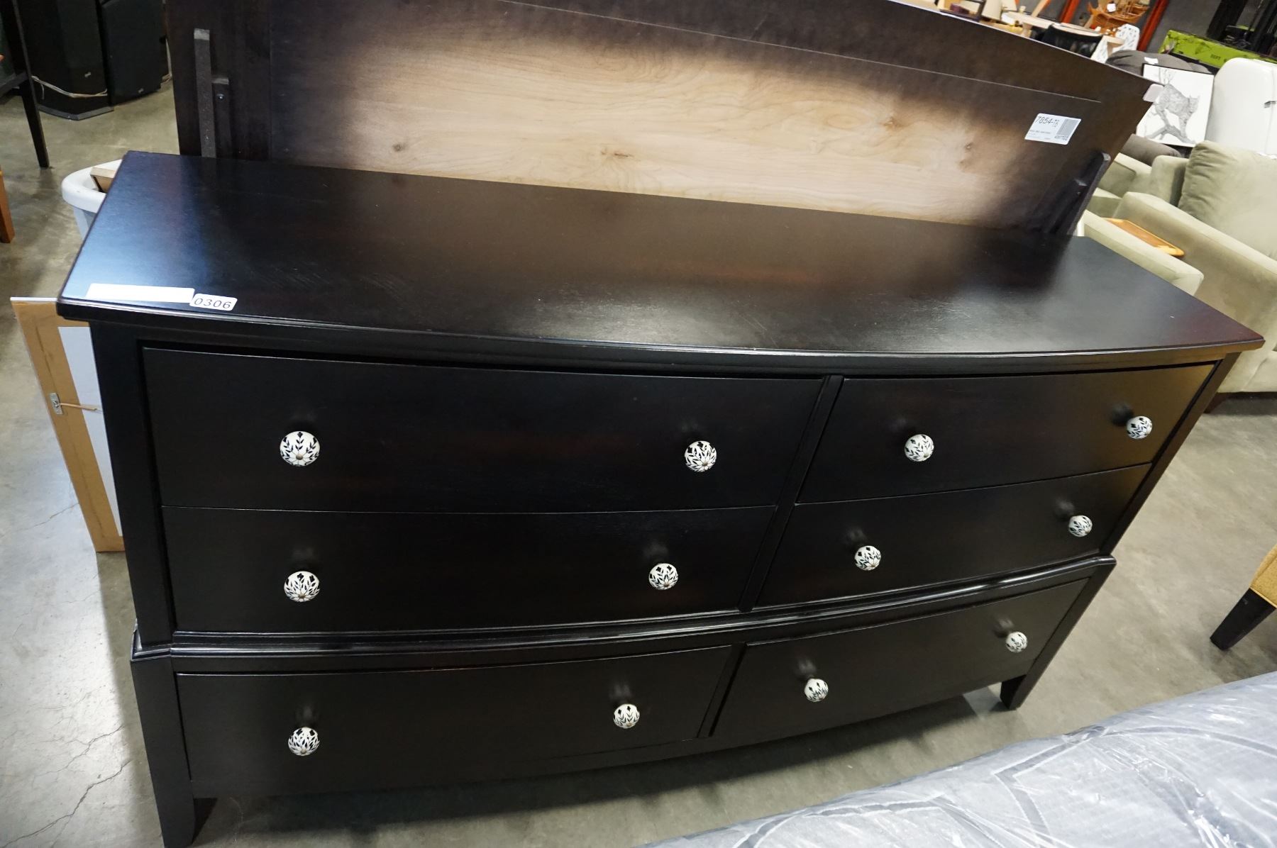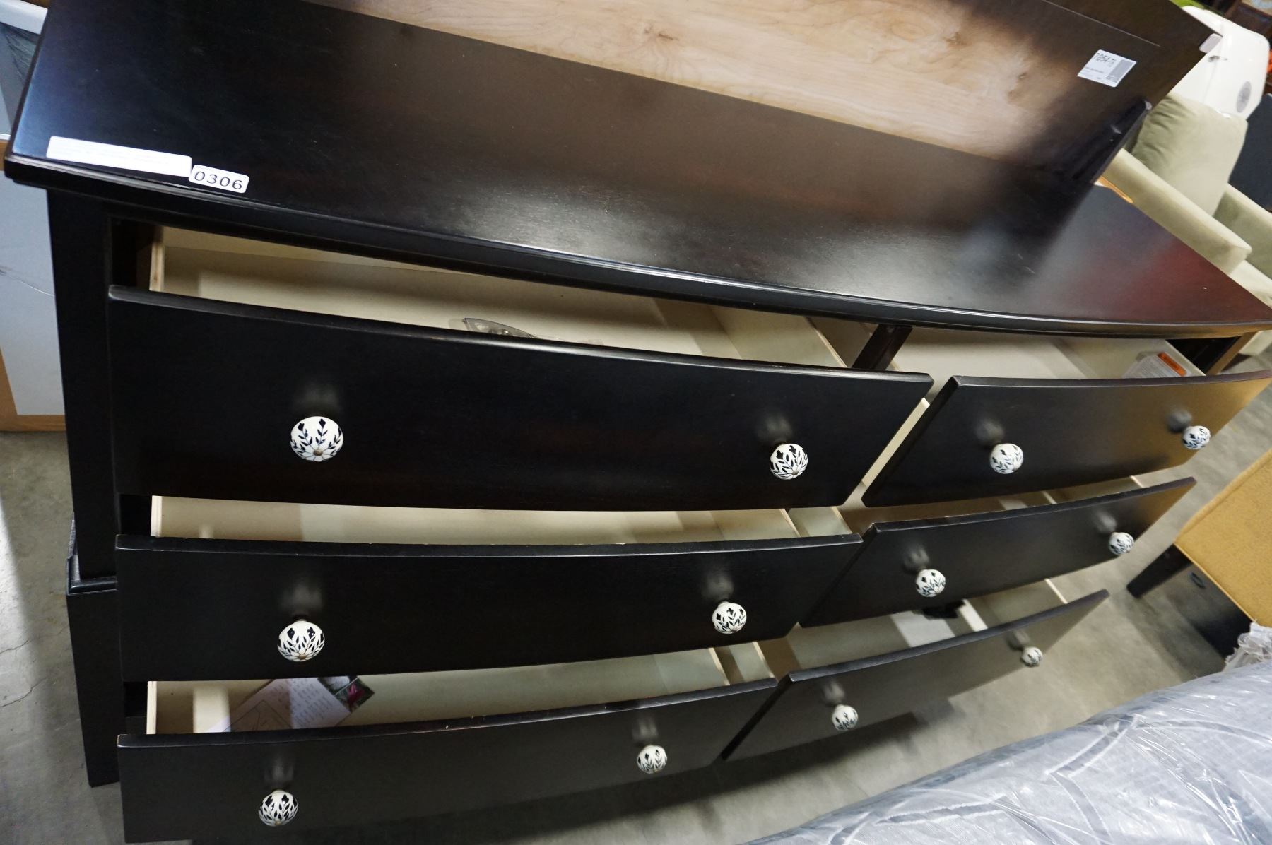DARK FINISH MODER 6 DRAWER DRESSER W/ ORIGINAL PORCELAIN KNOBS