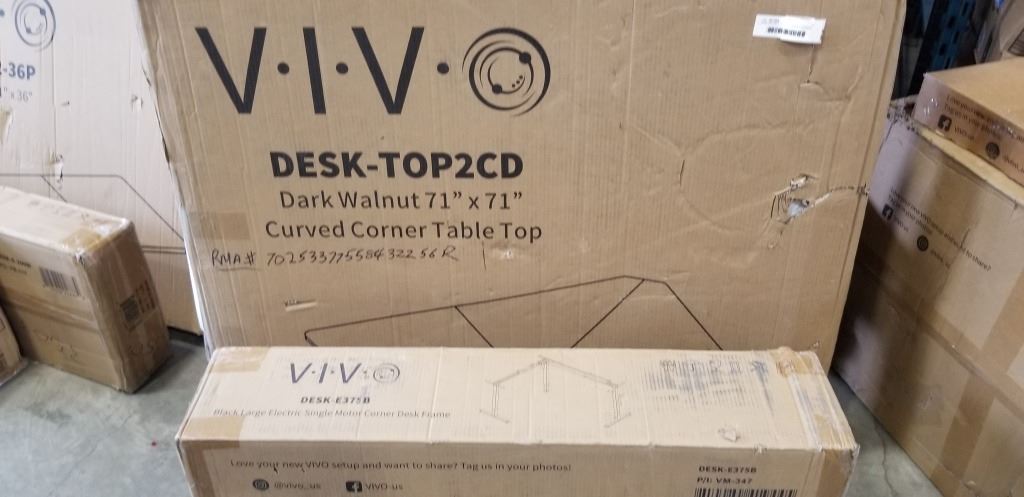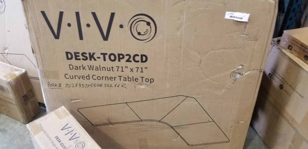 DARK WALNUT 71" X 71" CURVED CORNER TABLE TOP AND BLACK LARGE ELECTRIC SINGLE MOTOR DESK FRAME