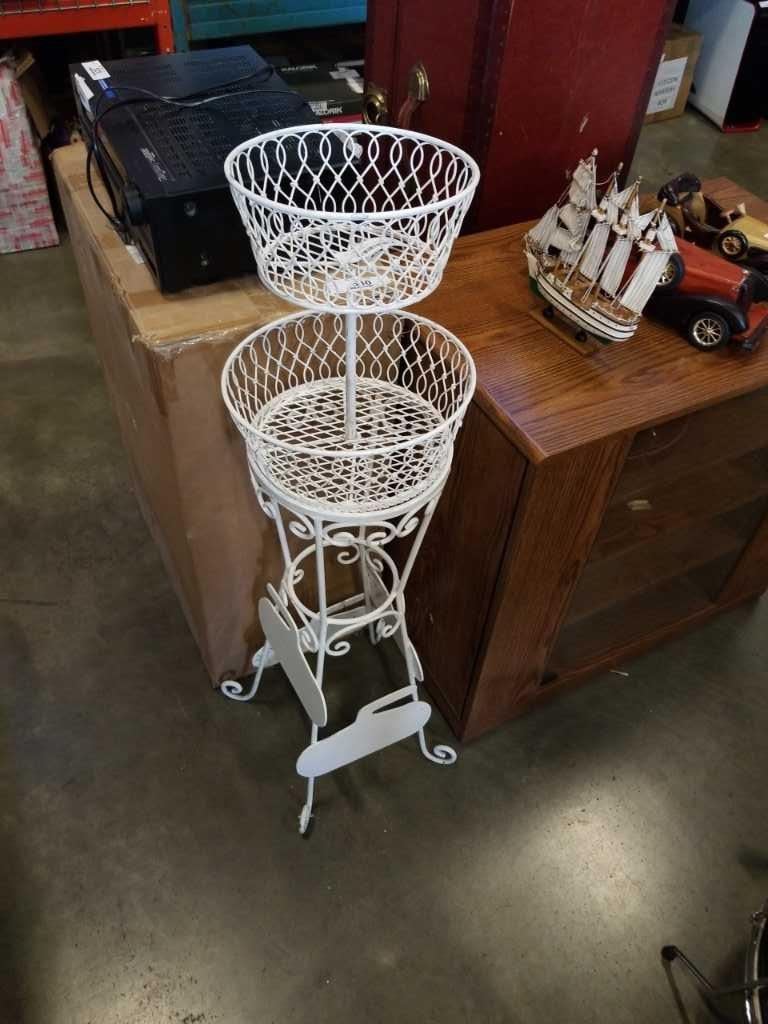 DECORATIVE METAL 2 TIER BASKET WITH STAND