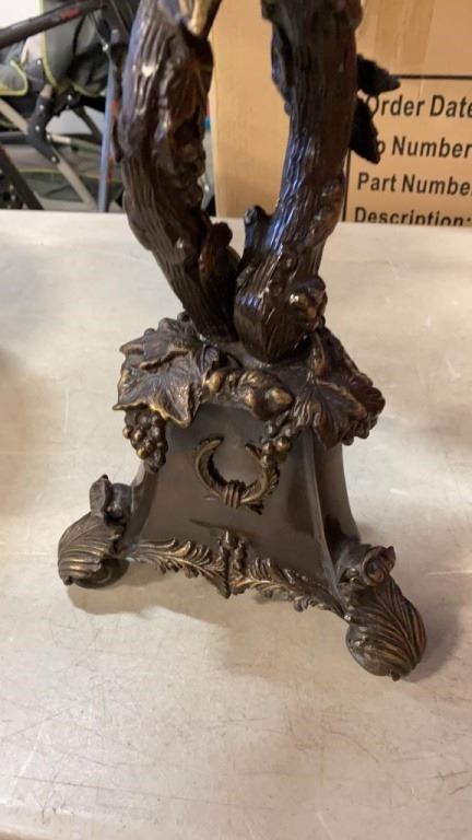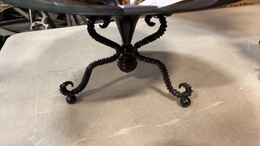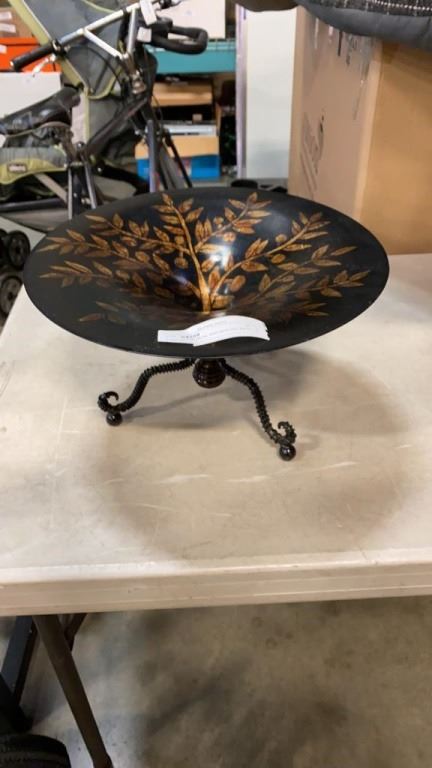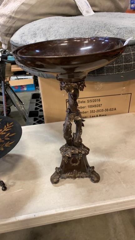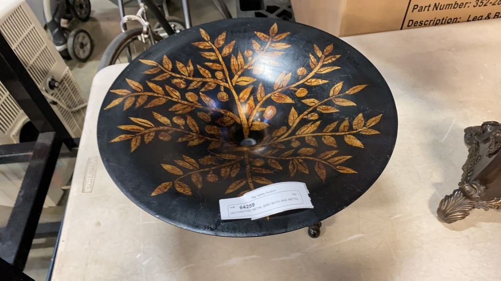 DECORATIVE METAL BIRD BATH AND METAL FLOWER PAINTED STAND