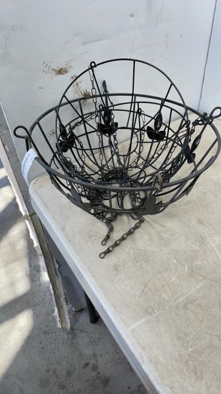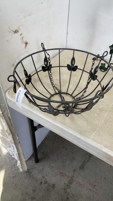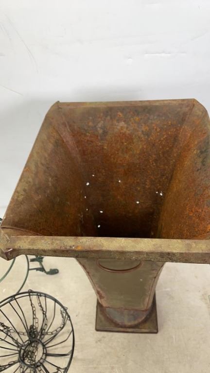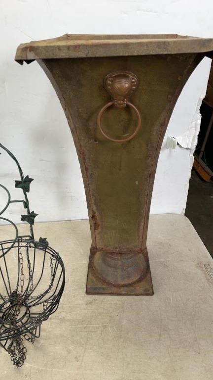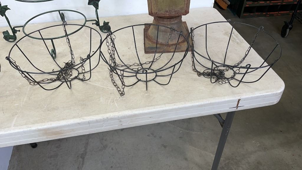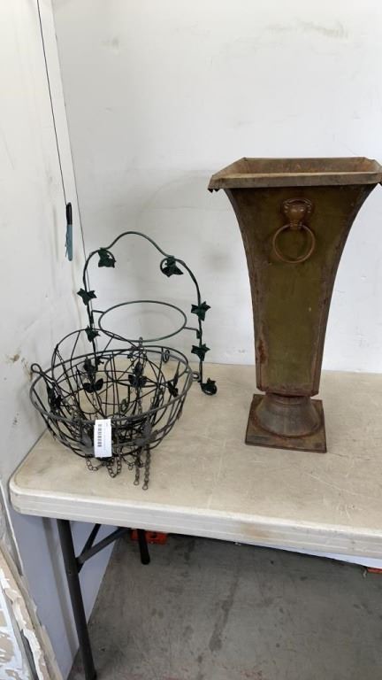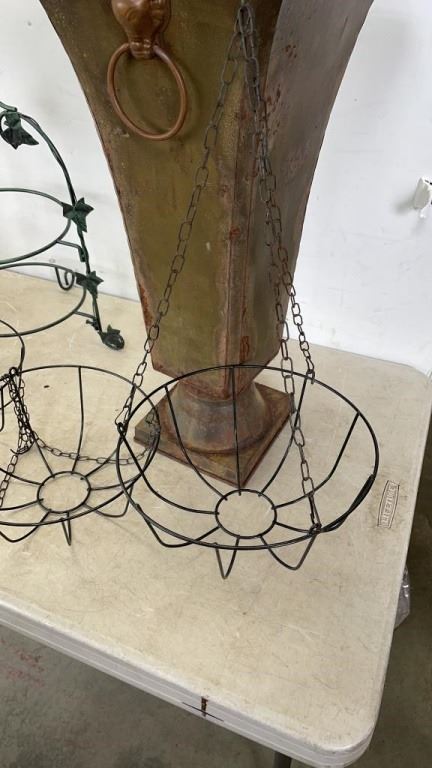 DECORATIVE METAL HANGING BASKETS AND 24" TALL METAL VASE