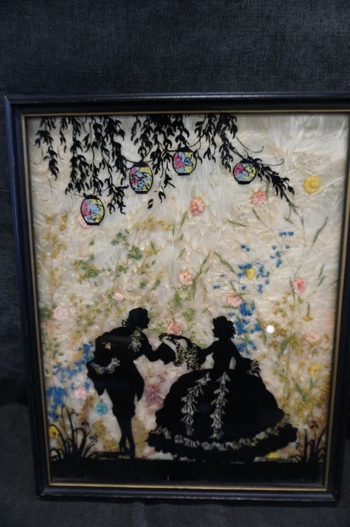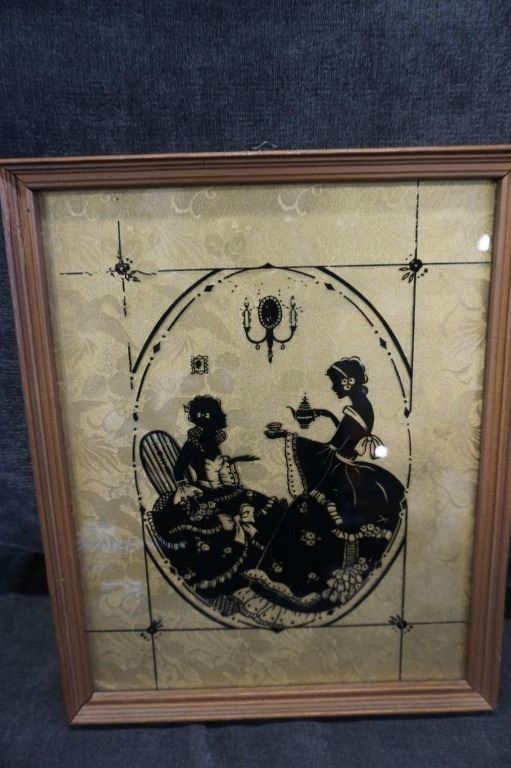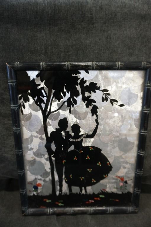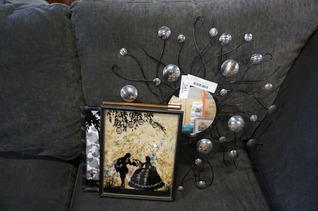 DECORATIVE MIRROR AND 3 SILHOUETTE PICTURES
