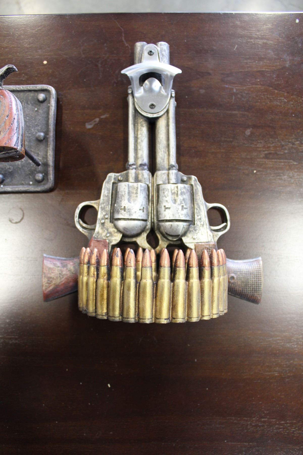 DECORATIVE PISTOL DISPLAY TOWEL RACK AND BOTTLE OPENER