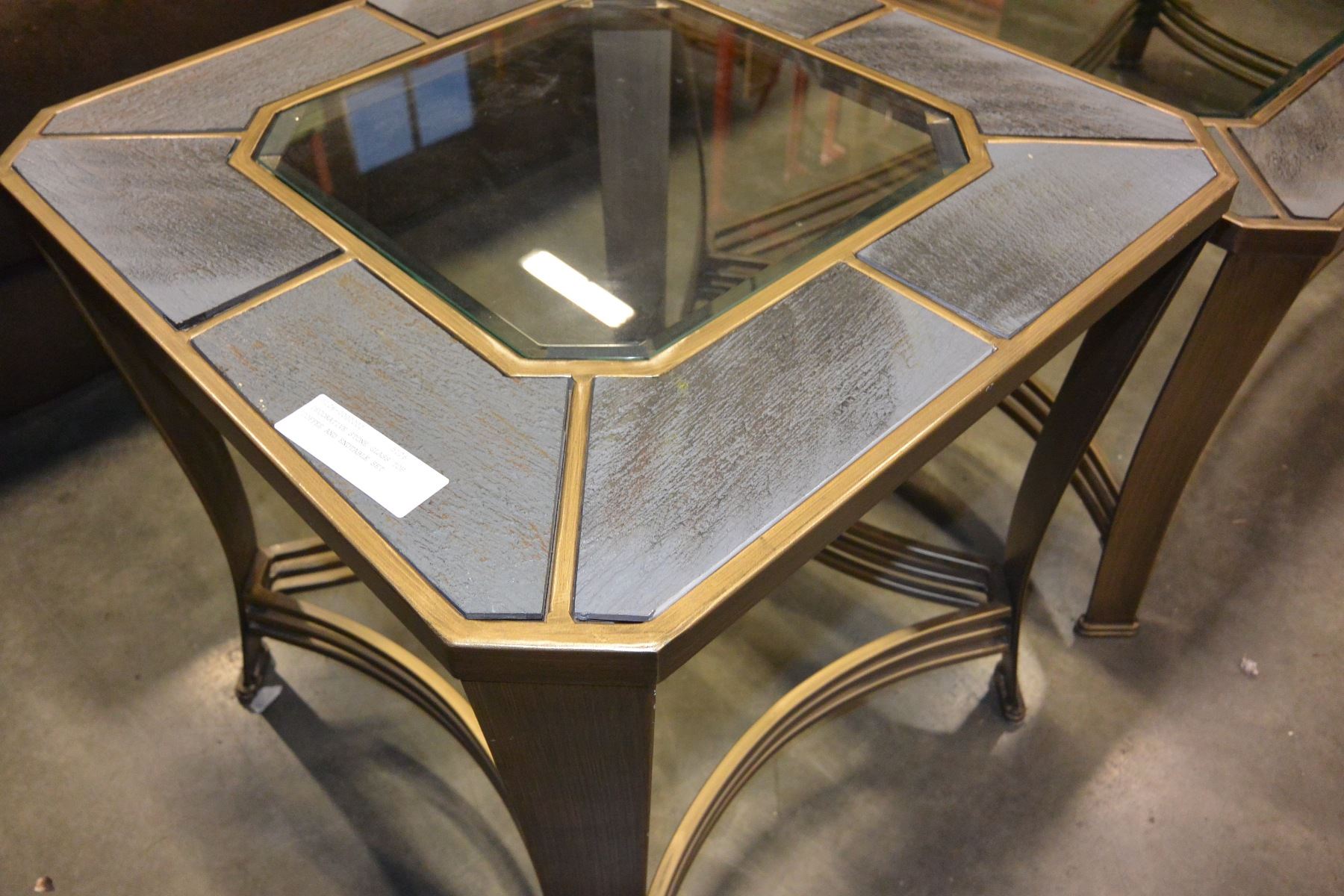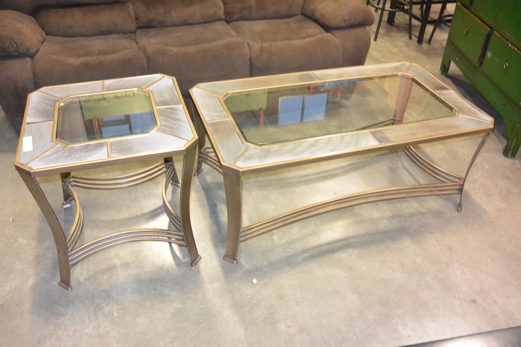 DECORATIVE STONE GLASS TOP COFFEE AND ENDTABLE SET
