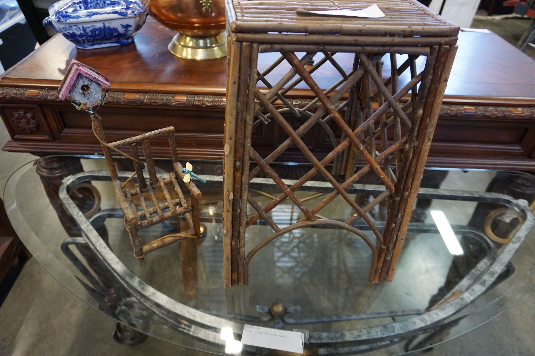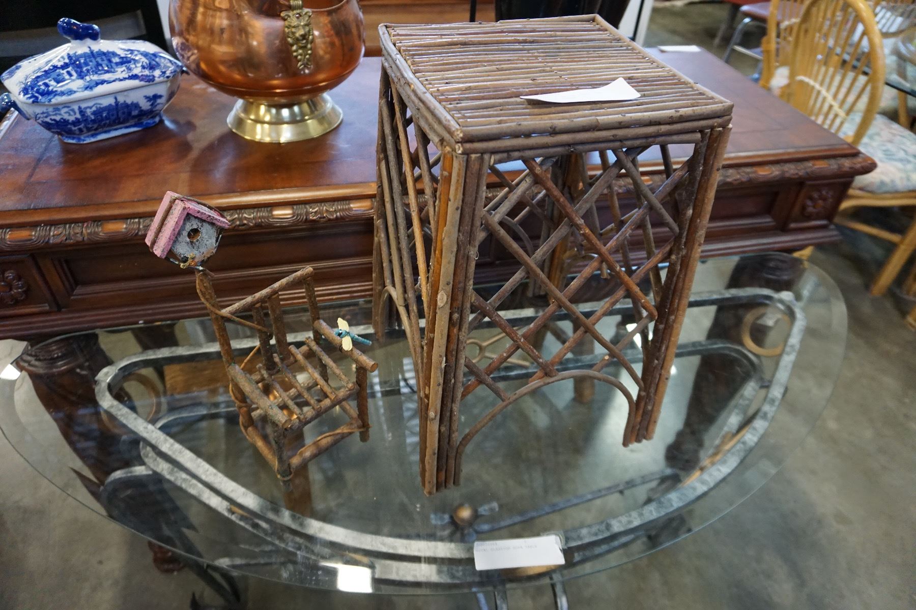 DECORATIVE TWIGS STOOL AND BIRDHOUSE CHAIR