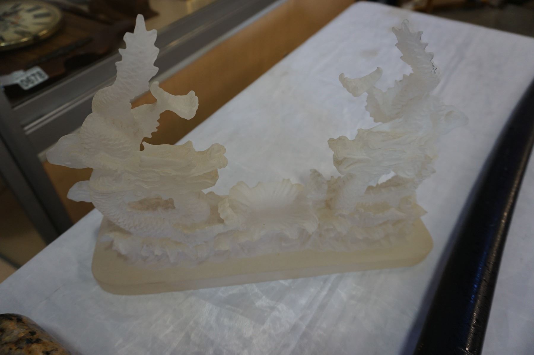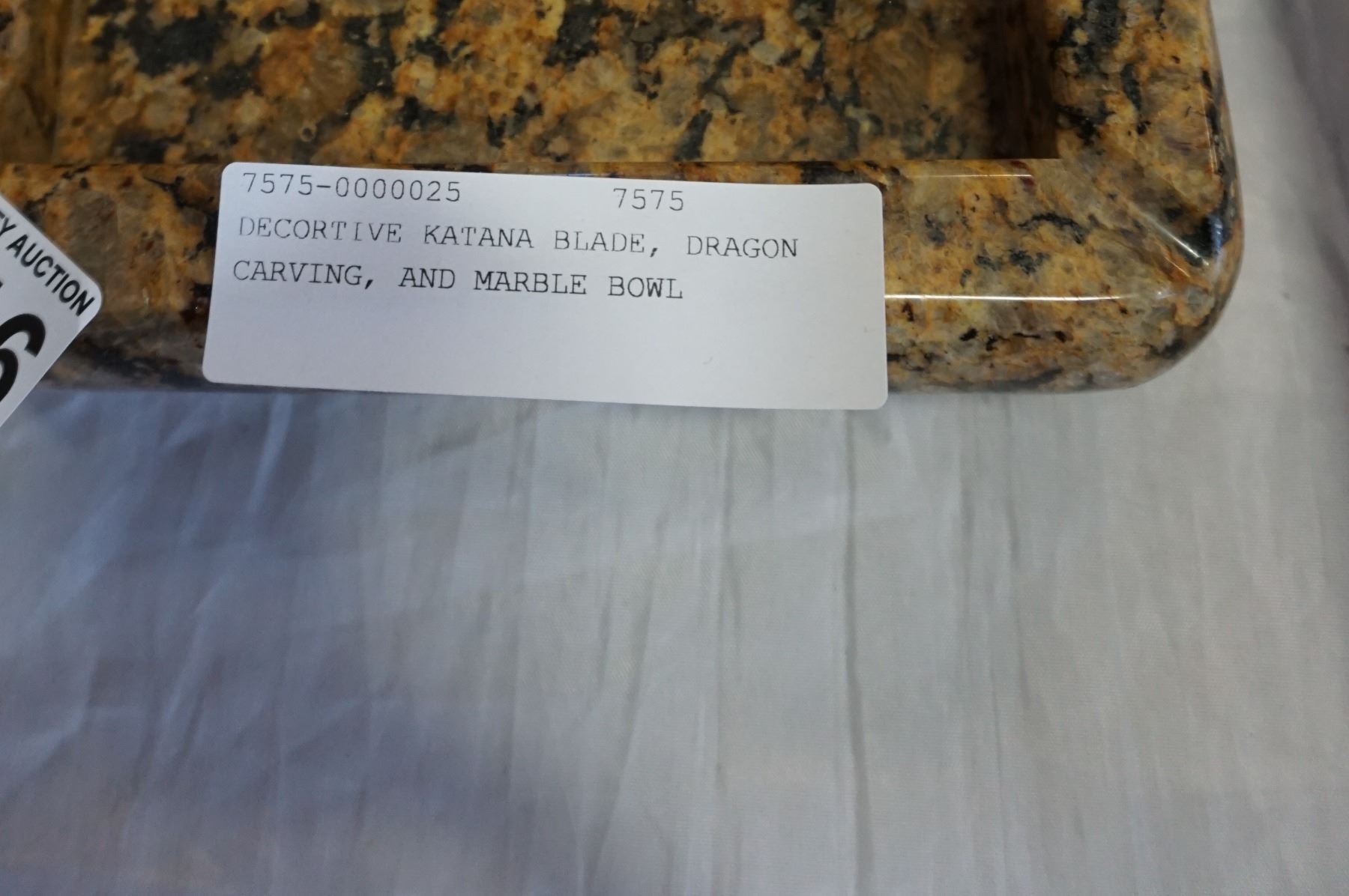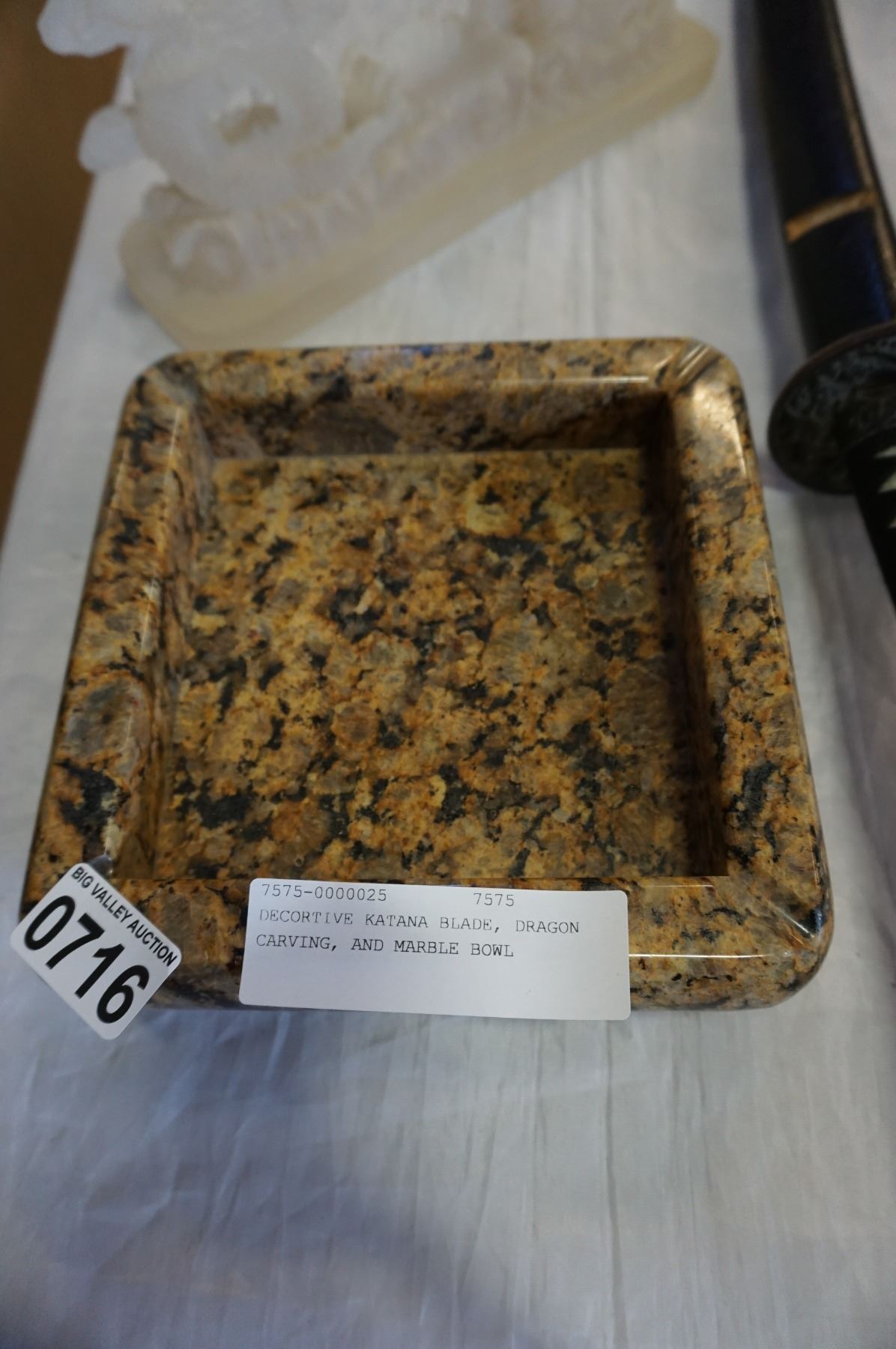 DECORTIVE KATANA BLADE, DRAGON CARVING, AND MARBLE BOWL