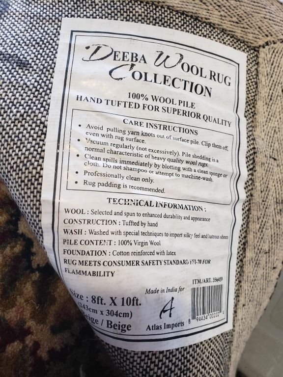 DEEBA WOOL RUG 8 X 10 FOOT HAND TUFTED