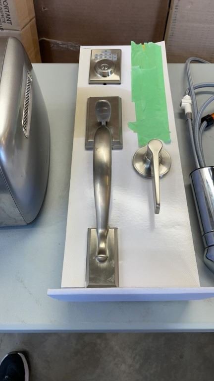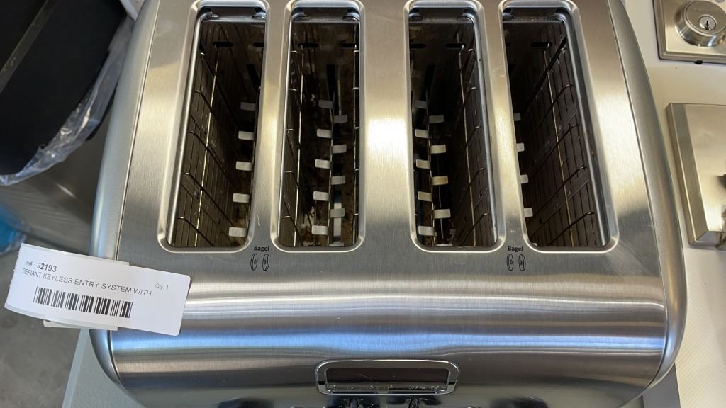DEFIANT KEYLESS ENTRY SYSTEM WITH KEYS AND INSTRUCTION TO RESET CODE, FAUCET AND KITCHENAID TOASTER