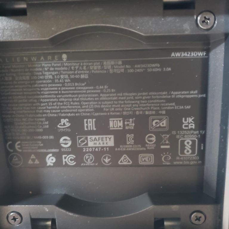 DELL ALIENWARE 34 CVD QHD 165H 0.1M OLED CURVED GAMING MONITOR TESTED WORKING WITH POWER CORD NO STAND RETAIL $1300