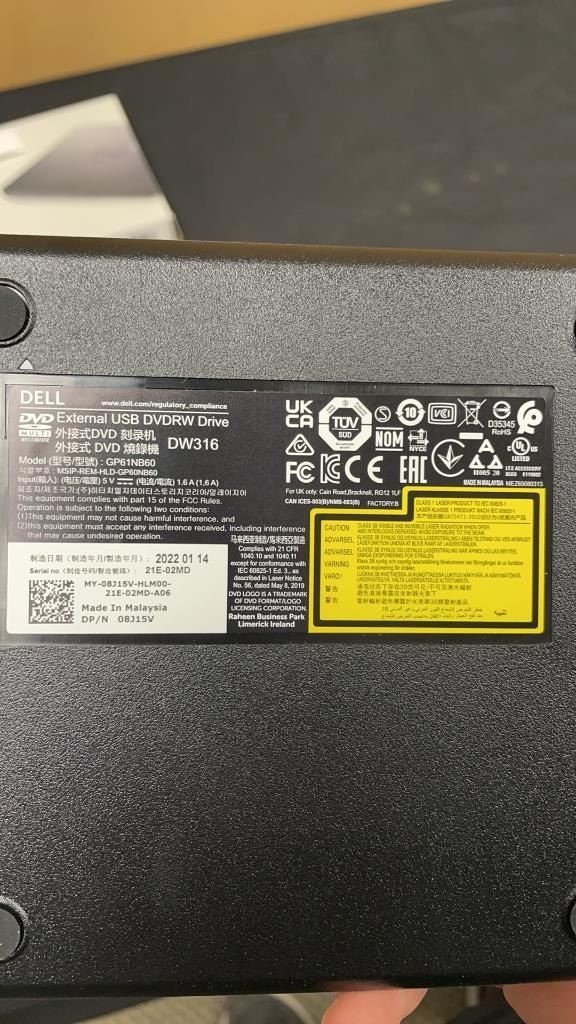 DELL USB SLIM EXTERNAL DVD DRIVE - TESTED WORKING, RETAIL $59