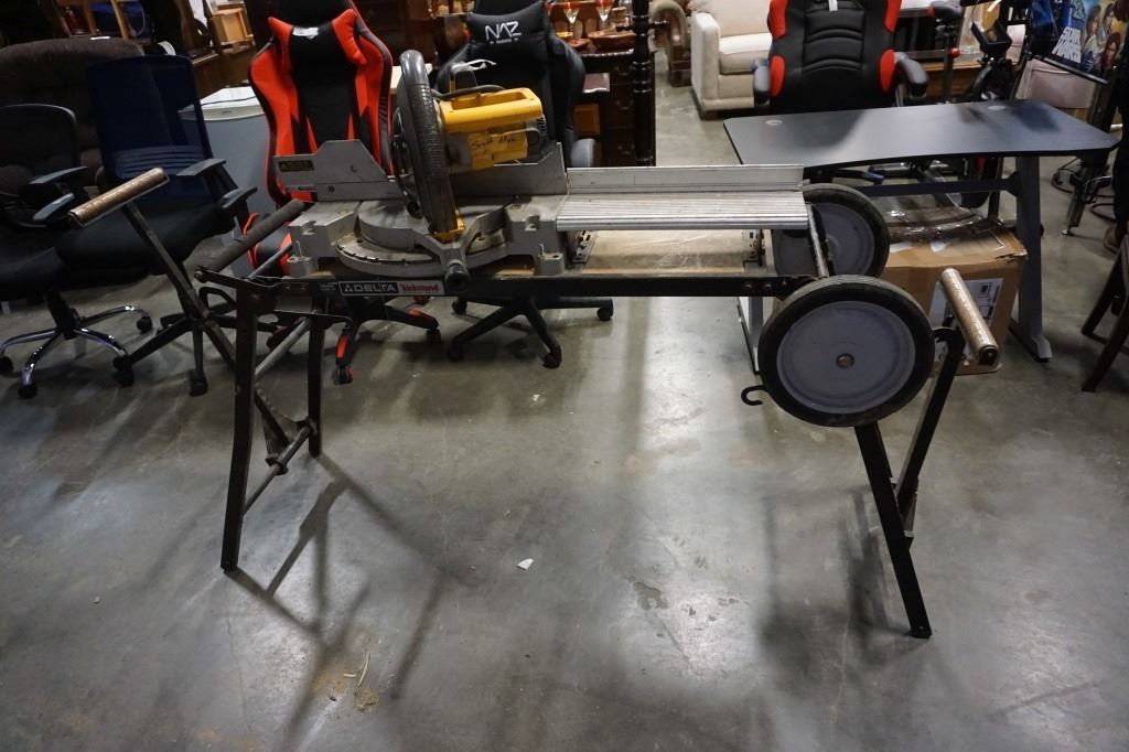 DELTA D705-04 COMPOUND MITER SAW ON DELTA KICKSTAND PORTABLE FOLDING TOOL STAND