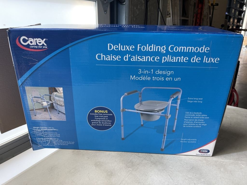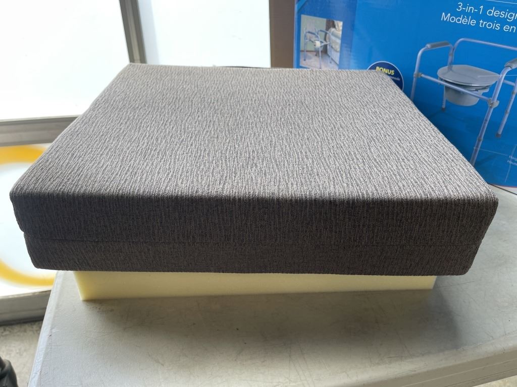 DELUXE FOLDING FOLDING COMMODE AND NEW FOAM SEAT CUSHION