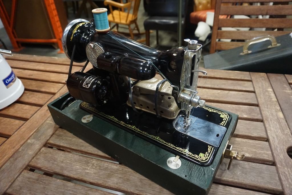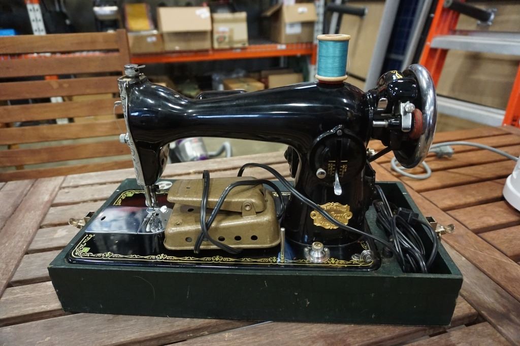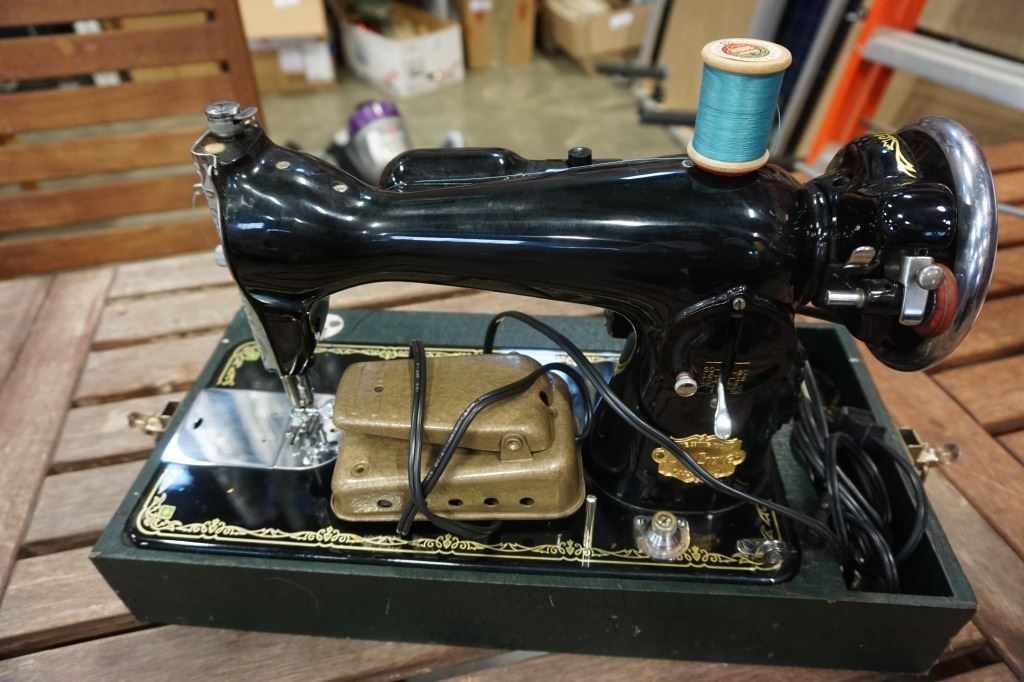DELUXE VINTAGE SEWING MACHINE IN CASE - TESTED WORKING