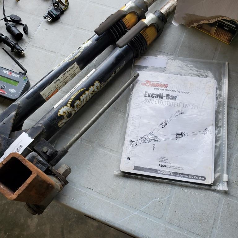 DEMCO EXCALI-BAR SELF ALIGNING TOW BAR WITH BOOKLET INCLUDES EVEN BRAKE ROADMASTER ELECTRIC BRAKING KIT