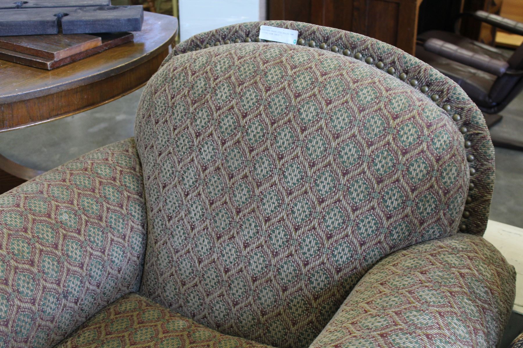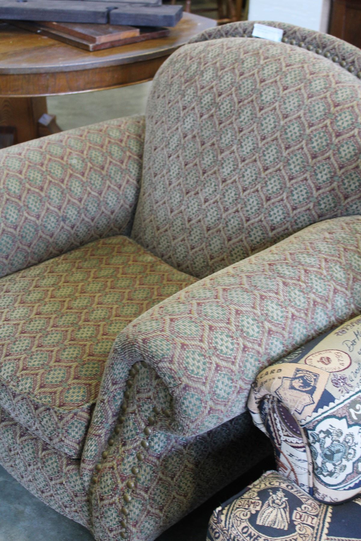 DESIGNER BRASS STUD ROLLED ARM LIVING ROOM CHAIR