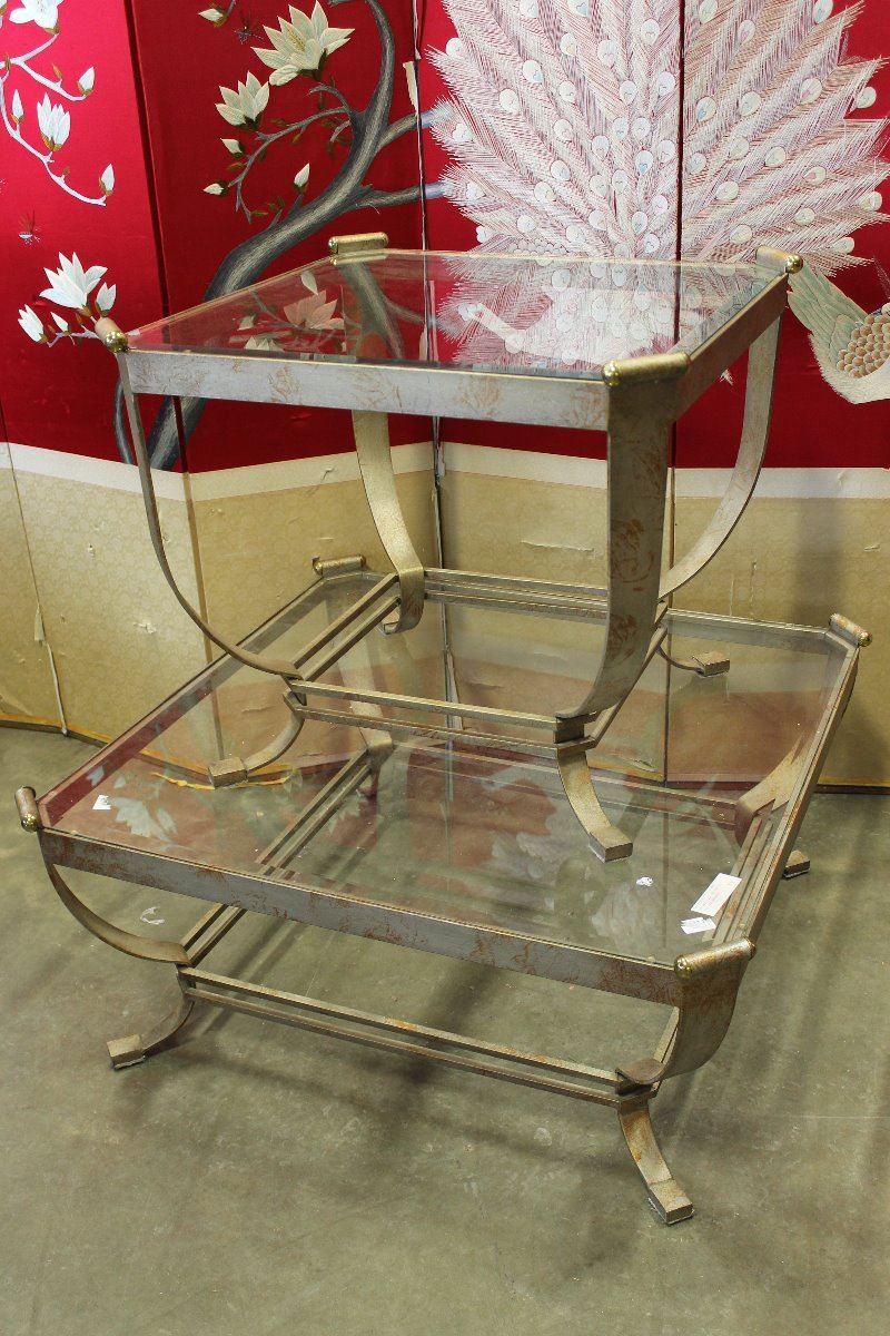 DESIGNER GLASS TOP COFFEE TABLE AND ENDTABLE