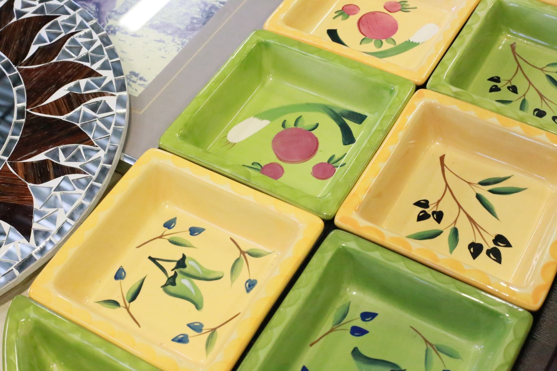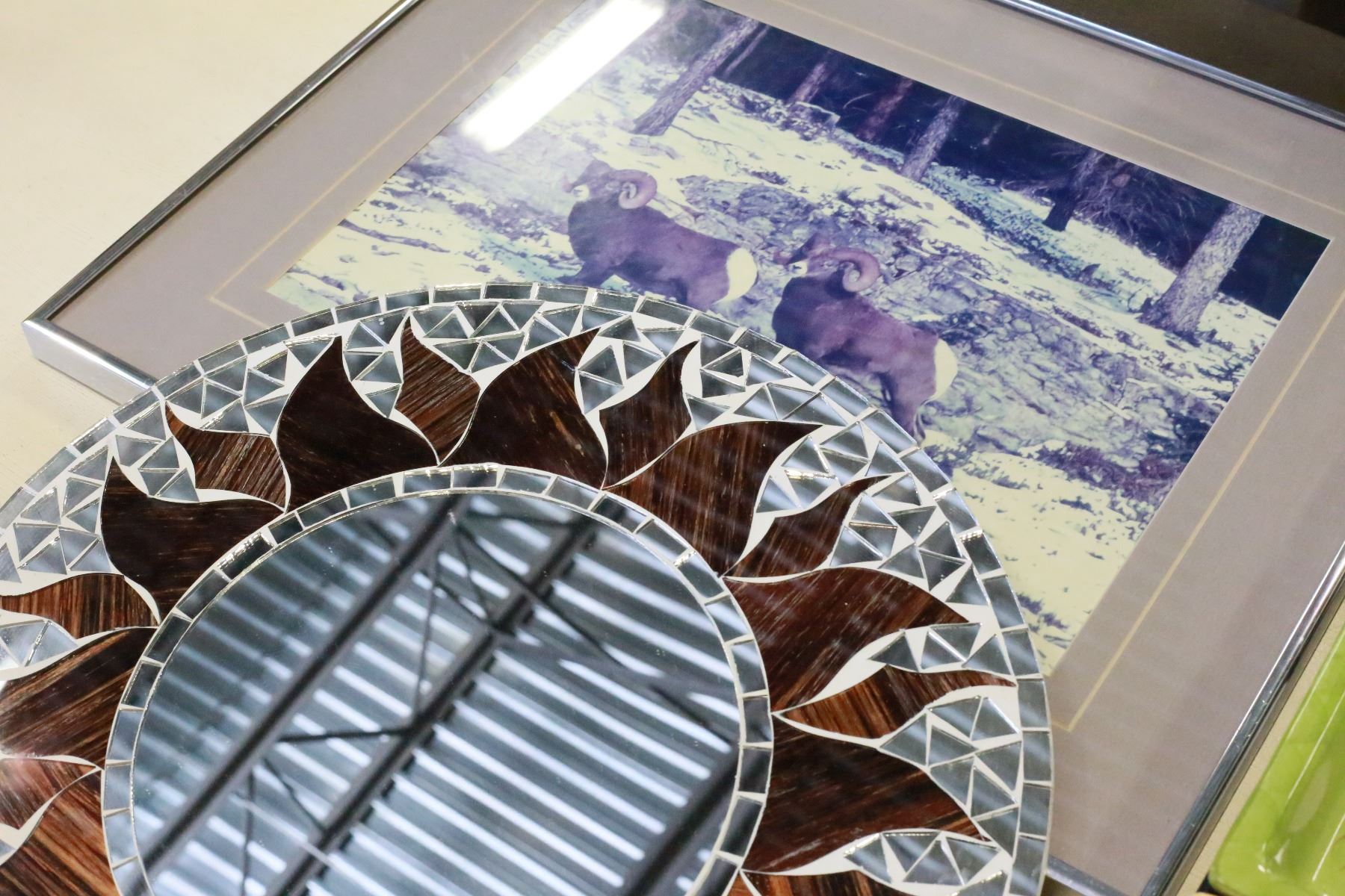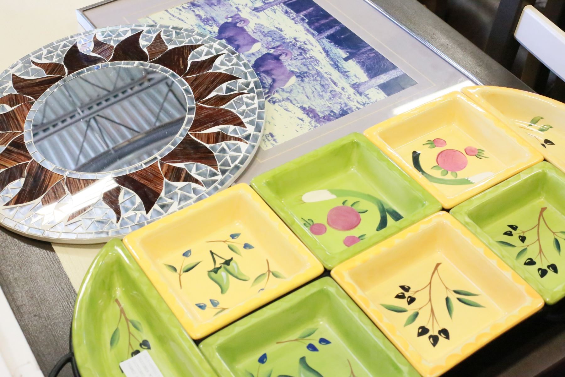 DESIGNER MIRROR LARGE SECTIONED SERVING PLATTER AND FRAMED PRINT