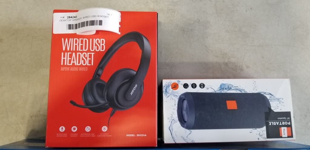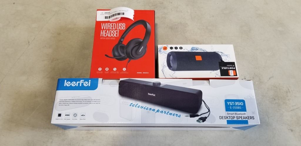 DESKTOP SPEAKER, WIRED USB HEADSET, AND BLUETOOTH SPEAKER