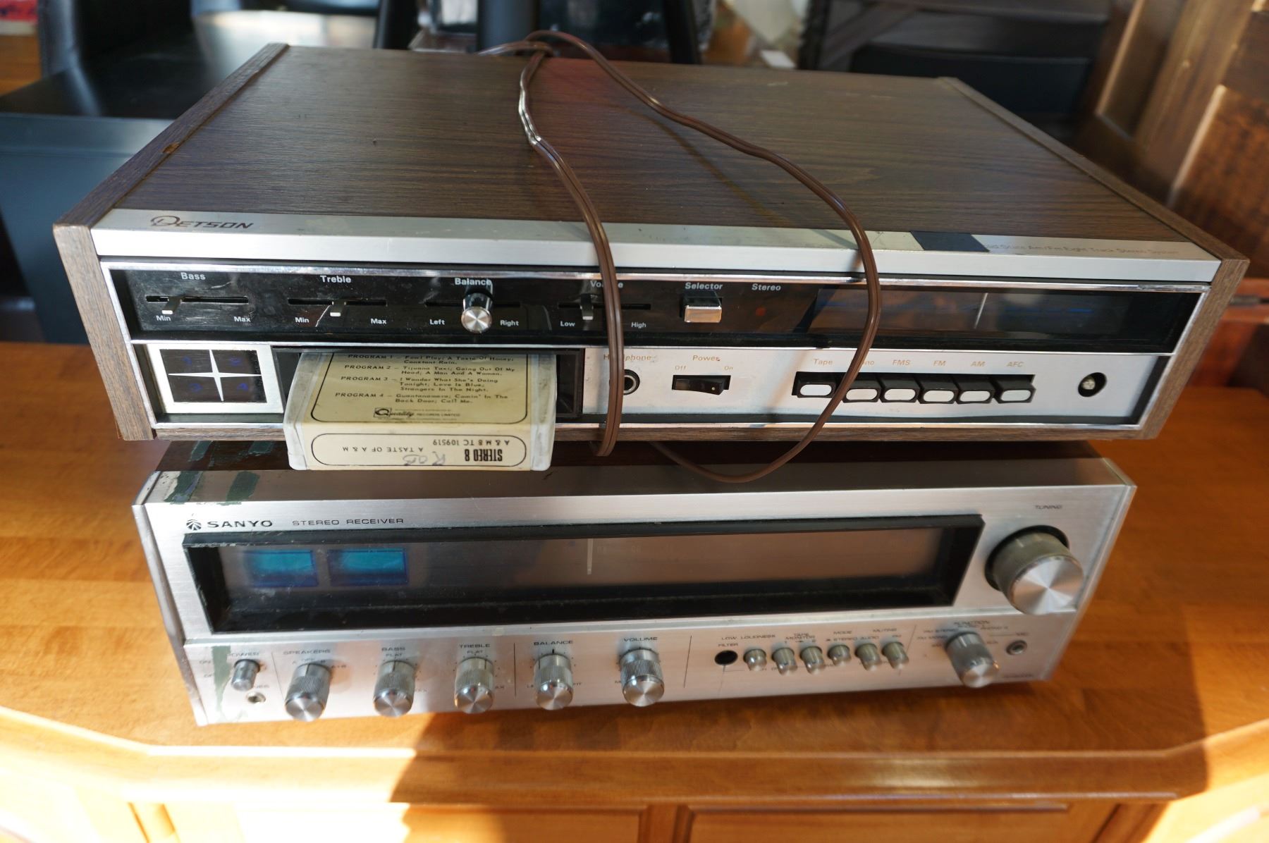 DETSON 8 TRACK PLAYER, RADIO, AND SANYO STEREO RECEIVER DCX 6000K