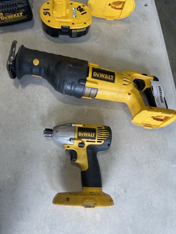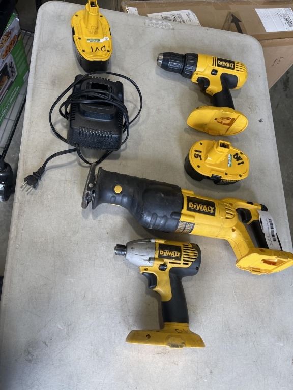 DEWALT RECIPROCATING SAW AND 2 DRILLS W/ 2 BATTERIES AND 1 CAHRGER - WORKING