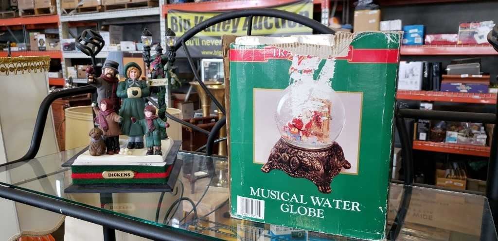 DICKENS MUSICAL CHRISTMAS DECOR AND MUSICAL WATER GLOBE