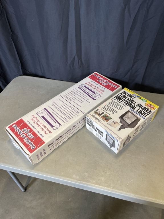 DIMPLEX ELECTRIC BASEBOARD HEATER, 22 INCH AND CLAMSHELL HALOGEN LIGHT