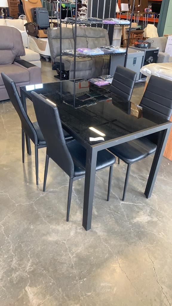DINING GLASSTOP TABLE WITH 4 CHAIRS