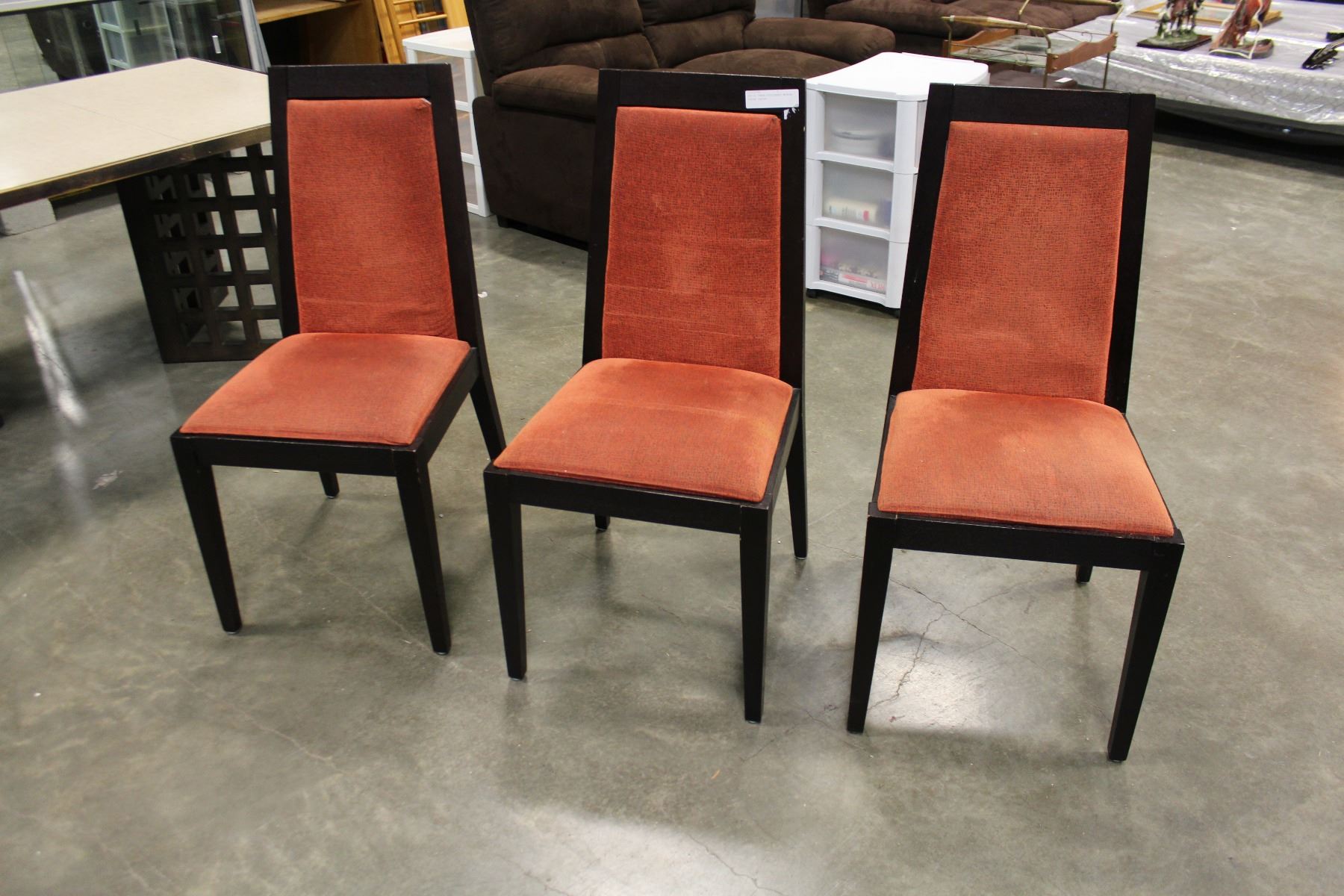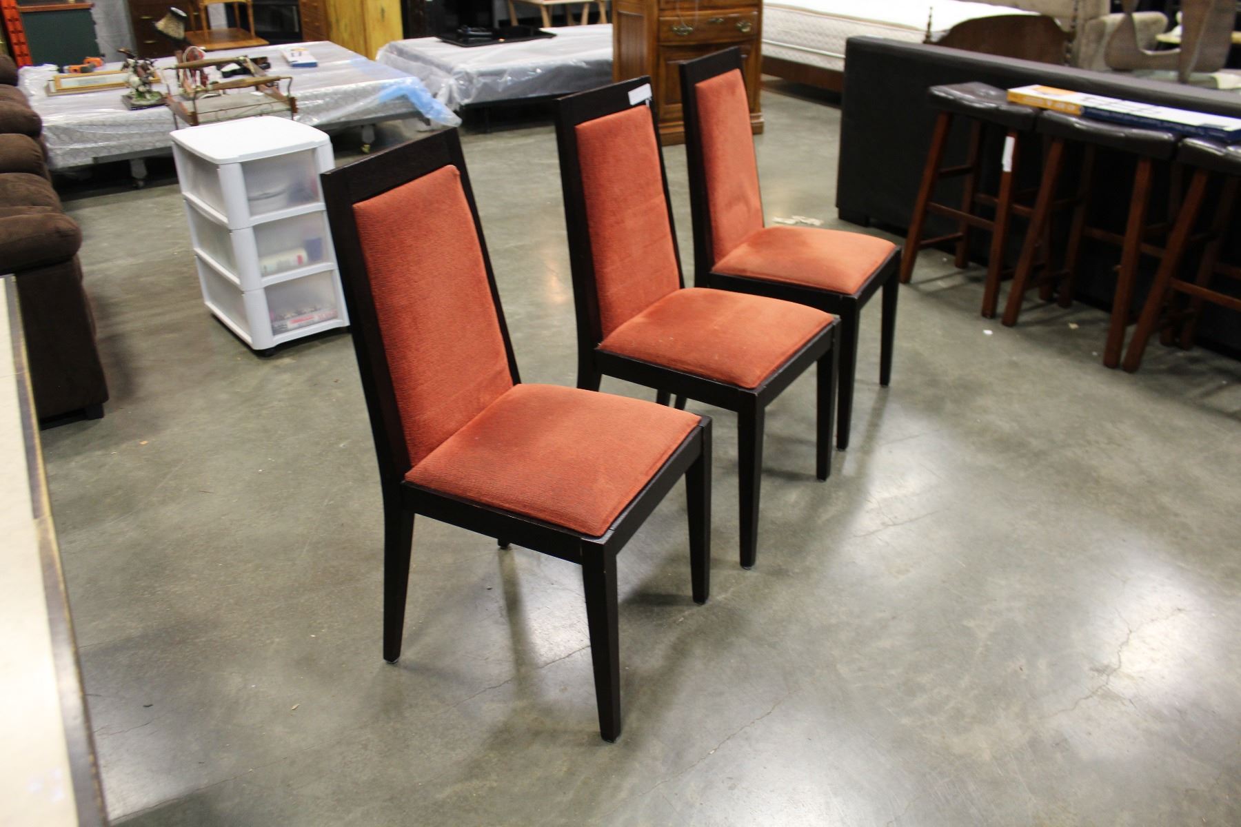 DINING TABLE AND THREE UPOLSTERED MODERN DINING CHAIRS
