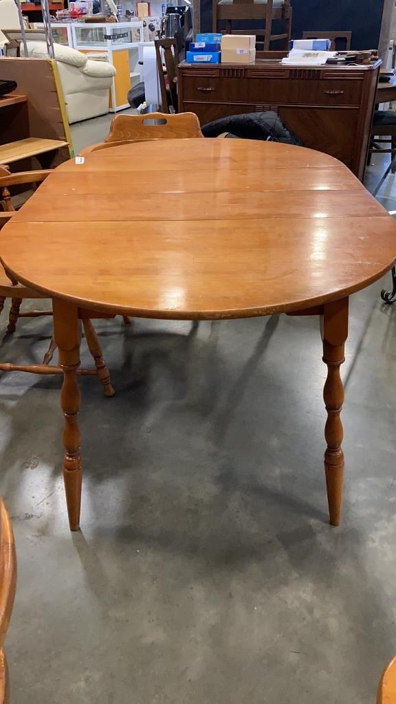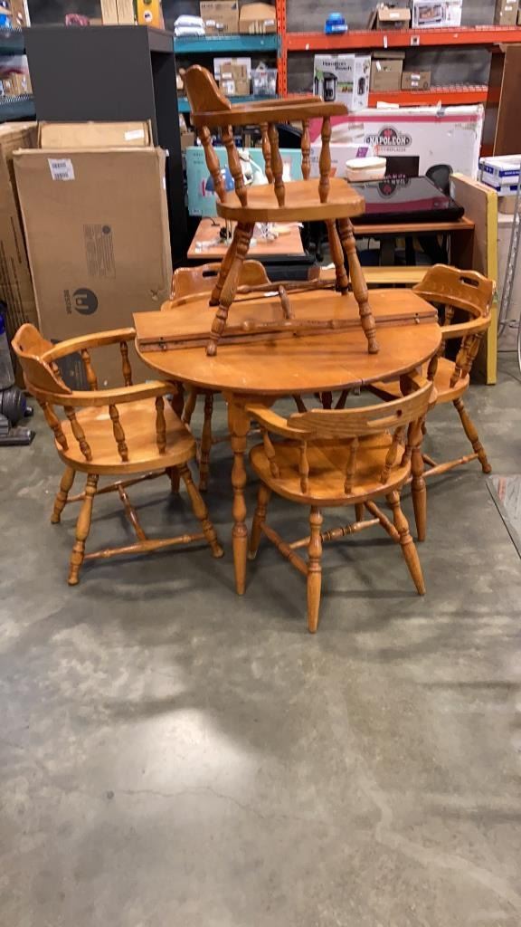 DINING TABLE WITH 2 LEAVES AND 5 TUB STYLE ARM CHAIRS