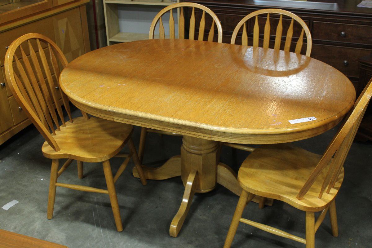 DINING TABLE WITH LEAF AND 4 ARROWBACK CHAIRS