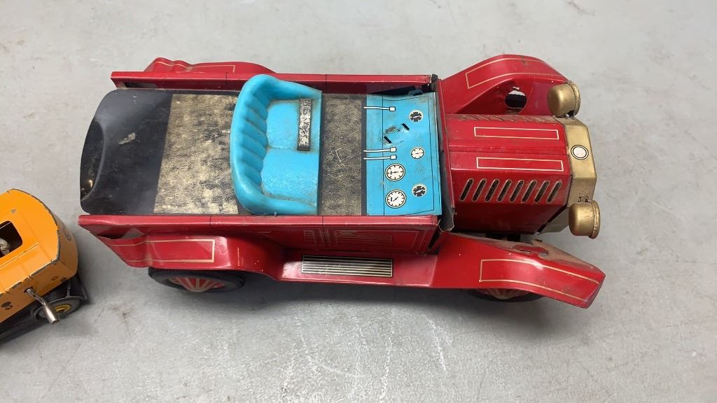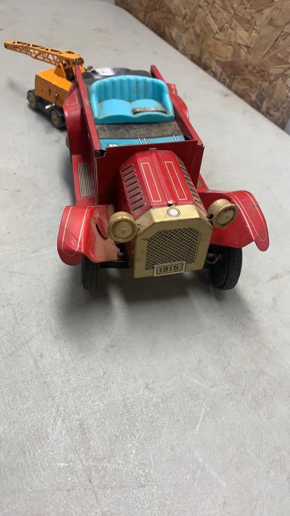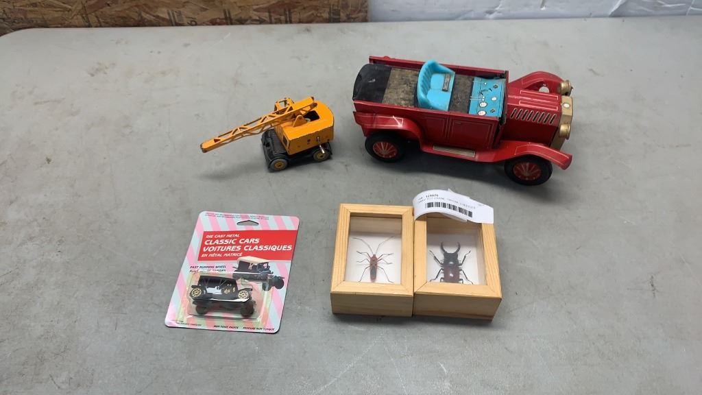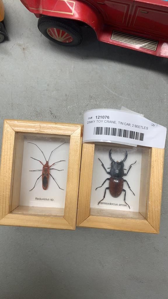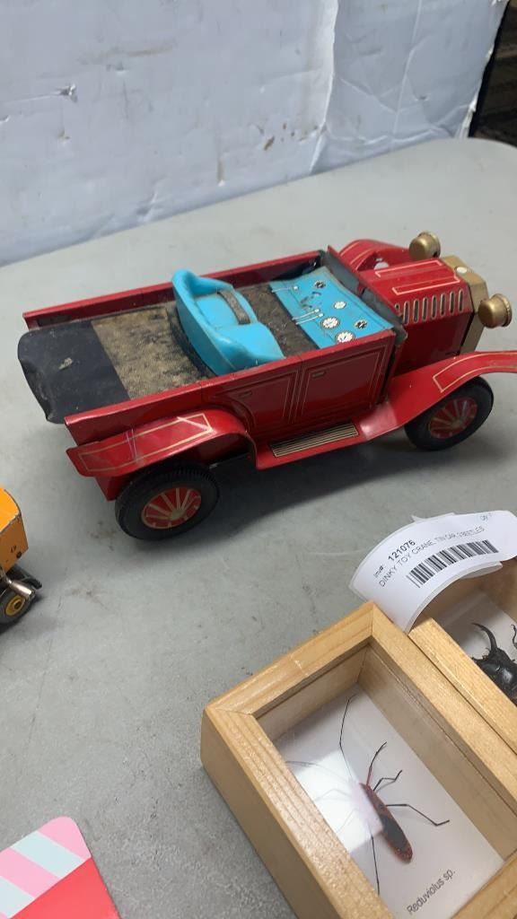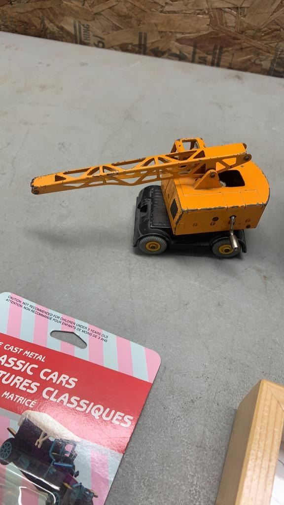 DINKY TOY CRANE, TIN CAR, 2 BEETLES AND CAR