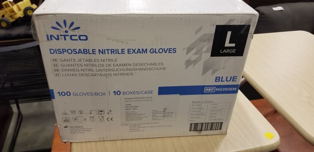 DISPOSABLE NITRILE GLOVES, SIZE LARGE, POWDER FREE, 100 GLOVES PER BOX X 10 BOXES TOTAL