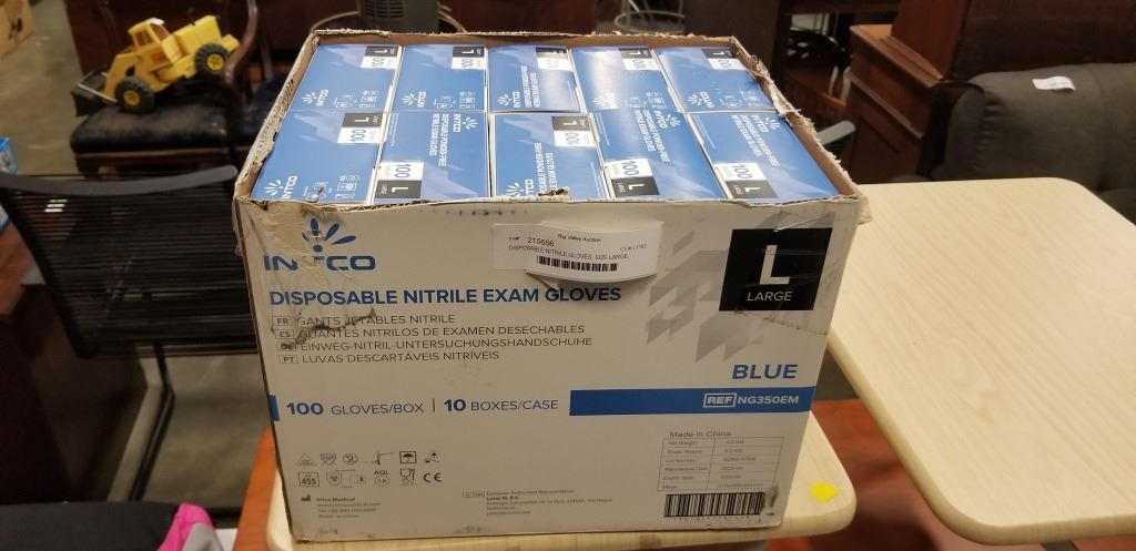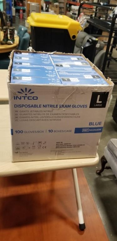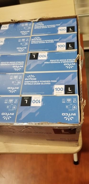 DISPOSABLE NITRILE GLOVES, SIZE LARGE, POWDER FREE, 100 GLOVES PER BOX X 10 BOXES TOTAL