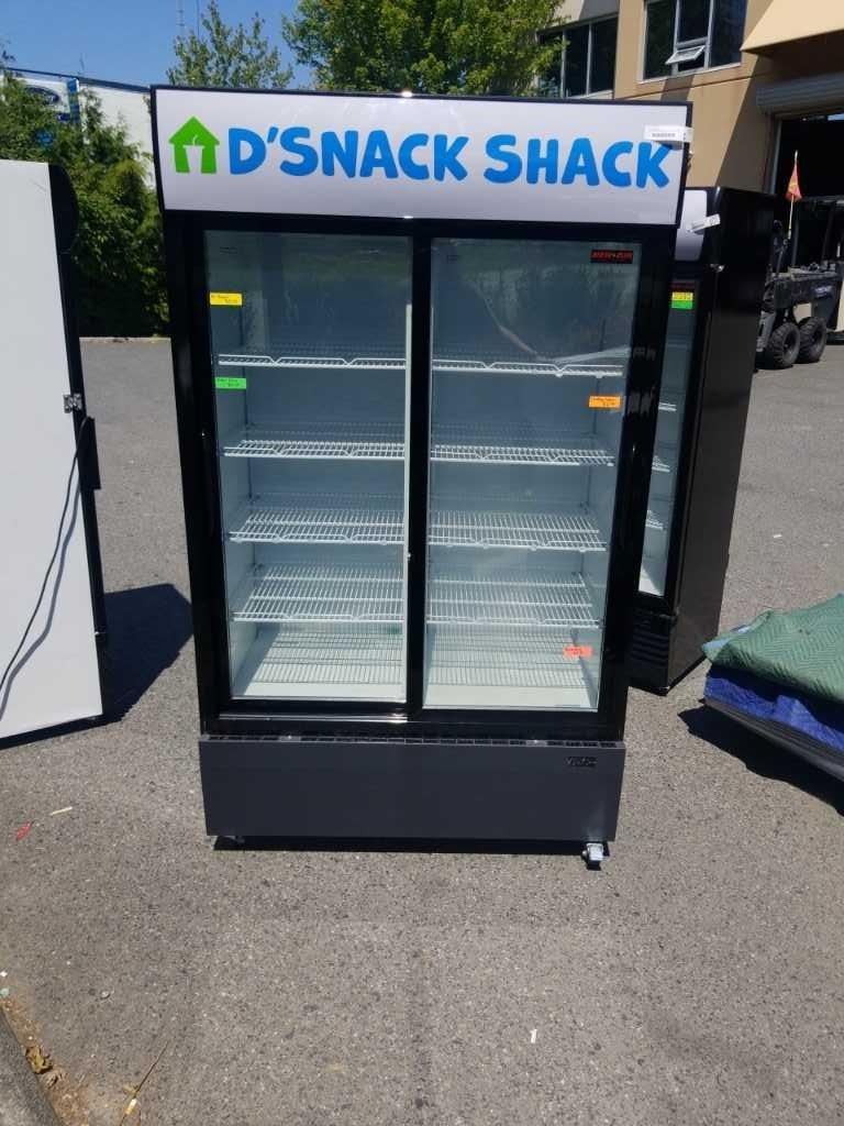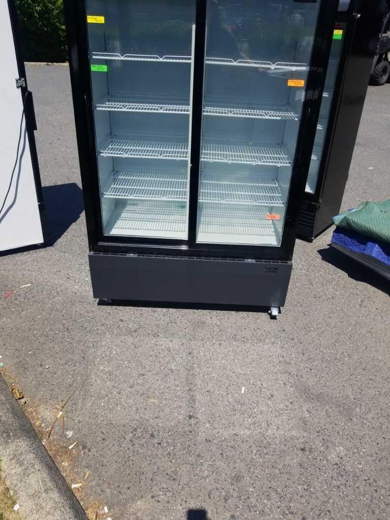 DOUBLE DOOR BEVERAGE COOLER - TESTED AND WORKING, RETAIL $2500, LESS THAN 1 YEAR OLD, VERY GOOD COND