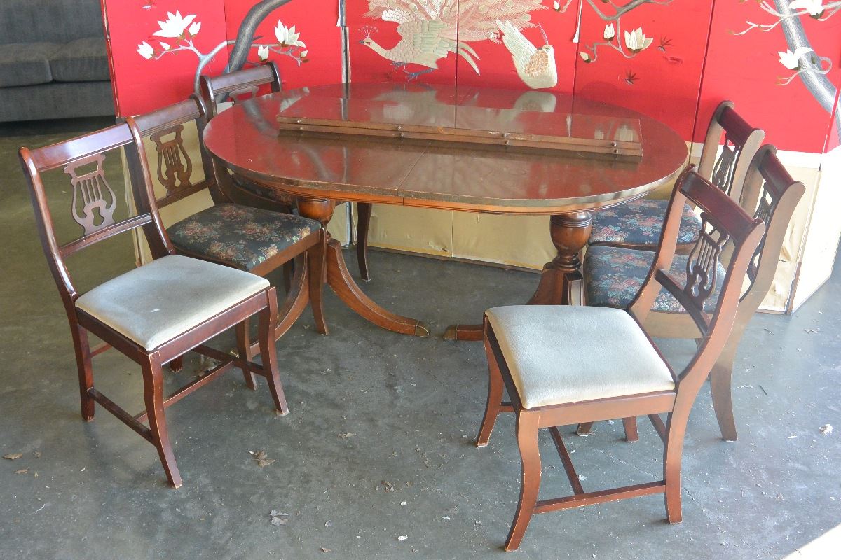 DOUBLE PEDESTLE DUNCAN PHYFFE DINING TABLE WITH 2 LEAFS AND