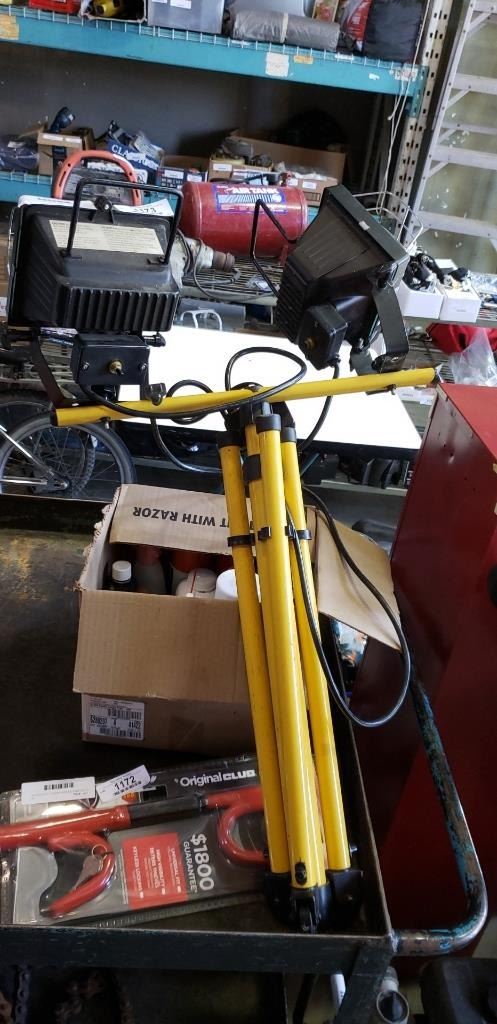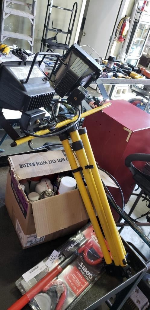 DOUBLE SHOP LIGHT ON STAND AND SHOP SPRAYS