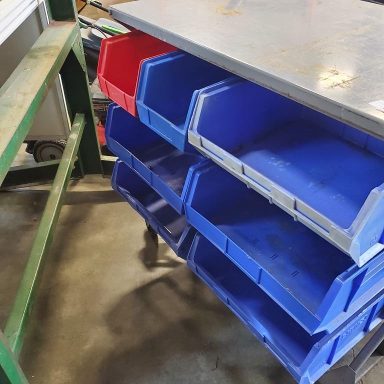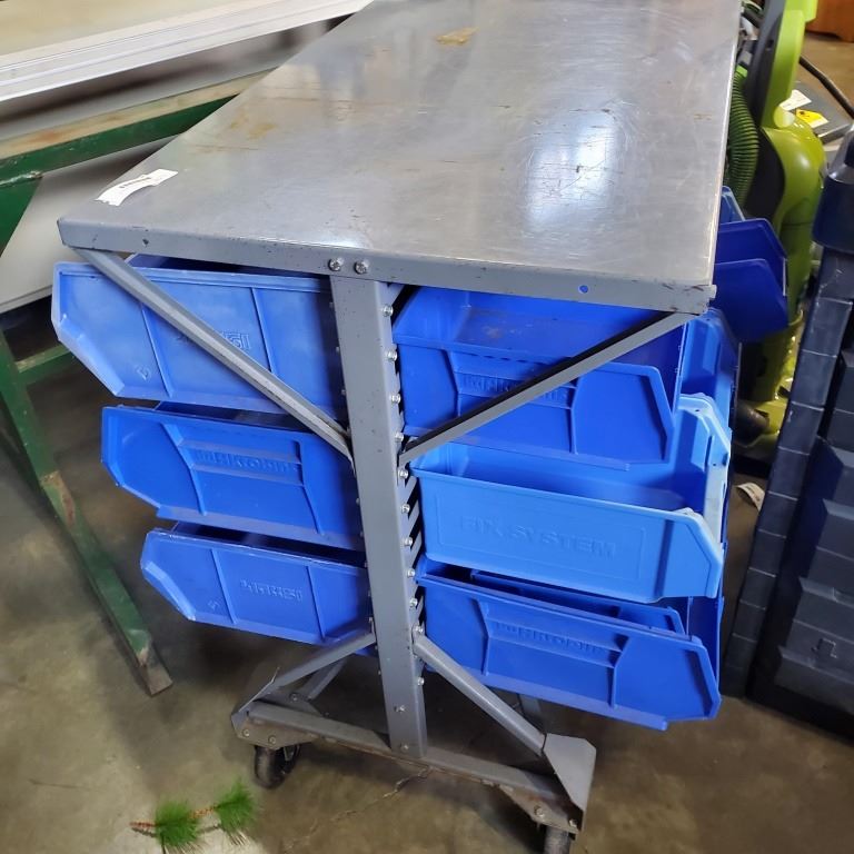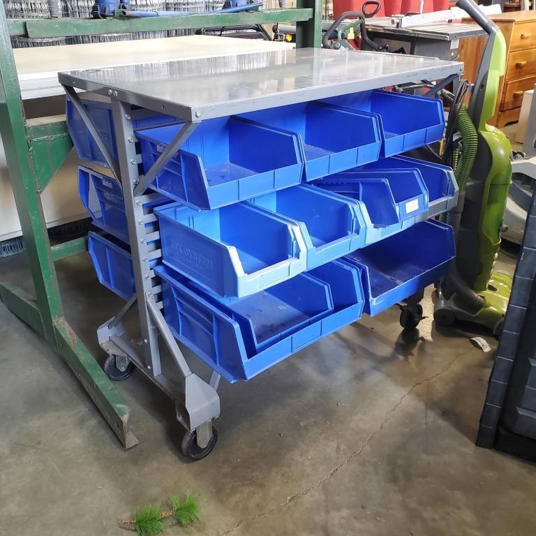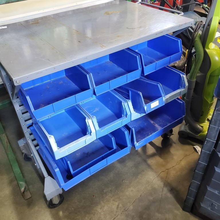 DOUBLE SIDED METAL STORAGE BIN RACK WITH STORAGE BINS