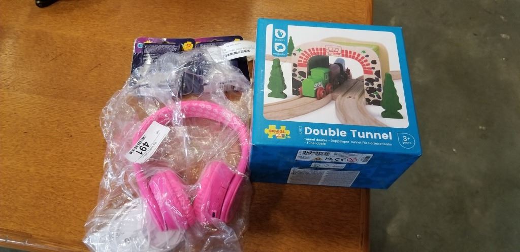 DOUBLE TROUBLE TRAIN TRACK WITH BARBIE HEADPHONES AND 2 LEGO FIGURES
