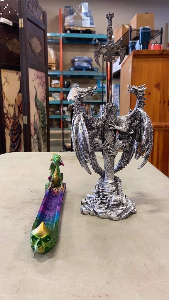 DRAGON LETTER OPENER 14 INCH TALL, DRAGON INCENSE HOLDER
