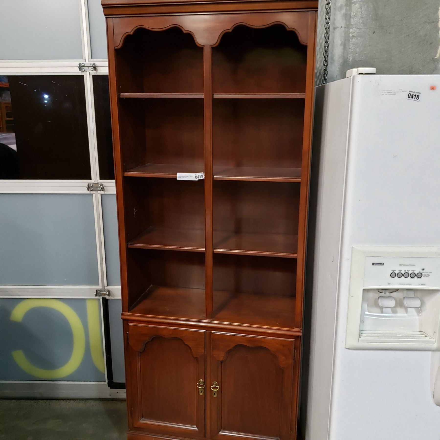DREXELK CHARLETON CHERRY STORAGE SHELF WITH 2 DOORS, APPROX. 7FT TALL