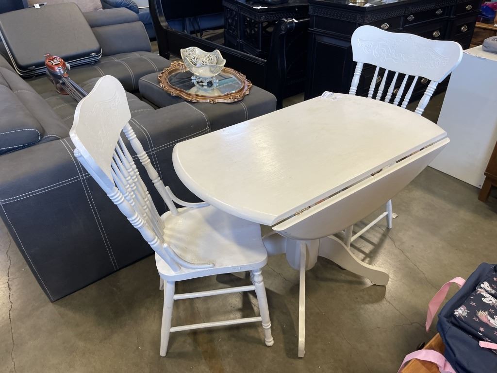 DROP SIDE DINETTE TABLE AND 2 ANTIQUE PAINTED SIDE CHAIRS
