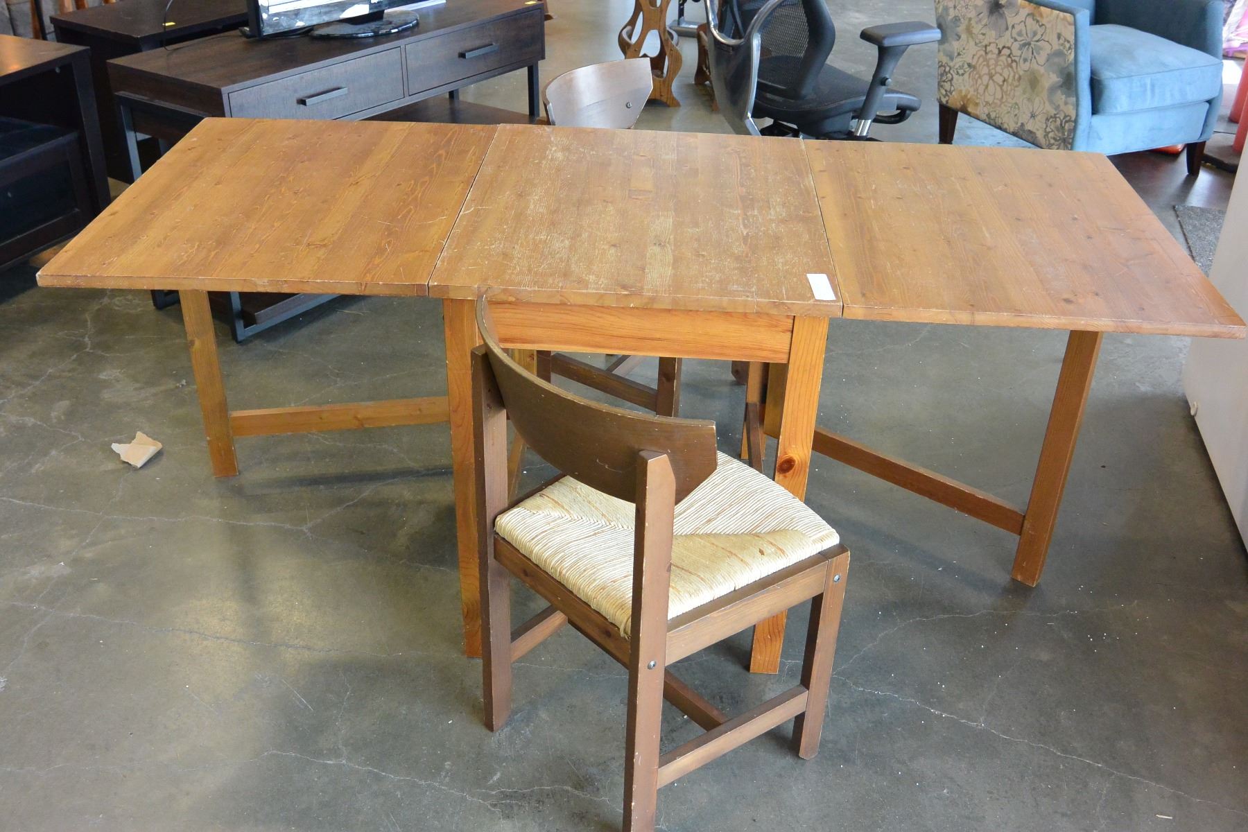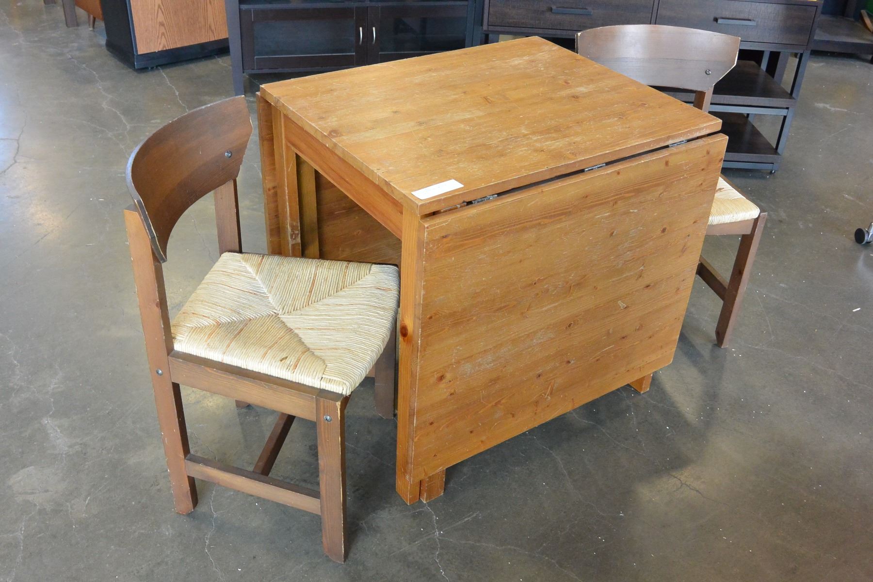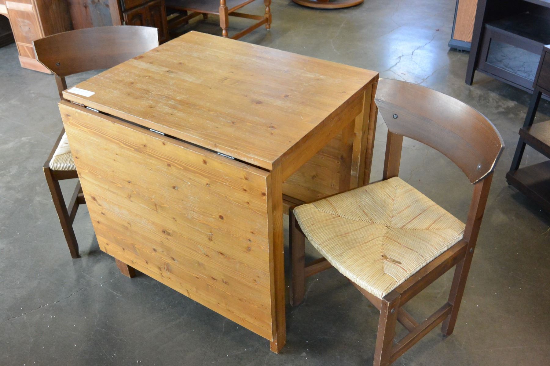 DROPLEAF TABLE AND TWO RUSH SEAT CHAIRS