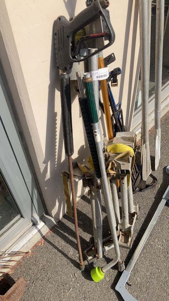 DRYWALL STILTS, PRESSURE WASHER AND HOSE ATTACHMENTS, GOLF BALL RETRIEVER AND LINE PAINTER