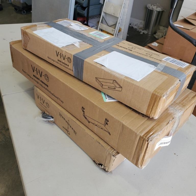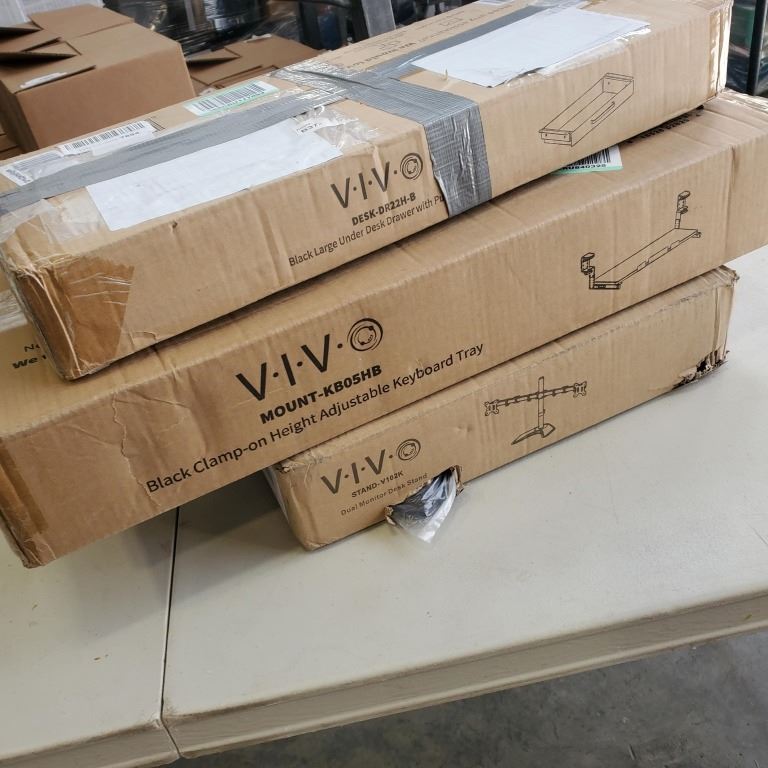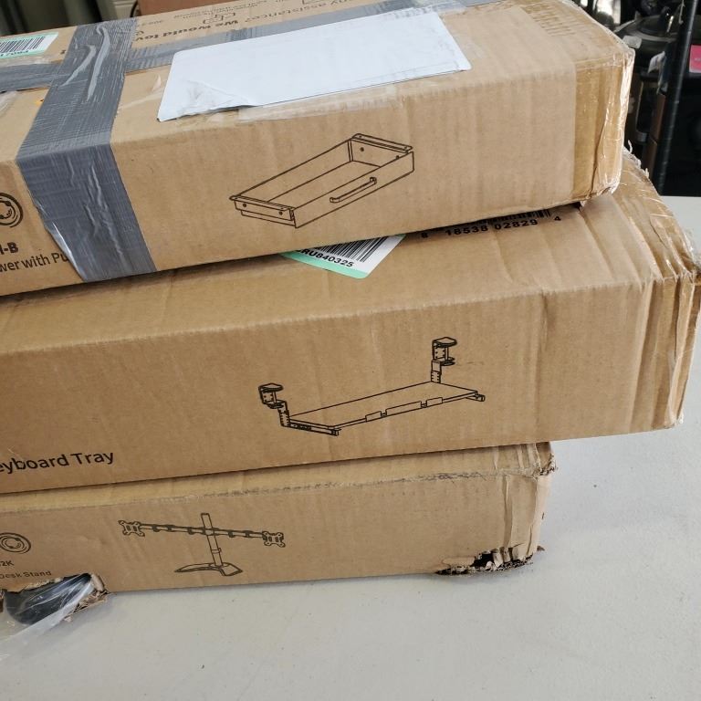 DUAL MONITOR DESK STAND, HEIGHT ADJUSTABLE KEYBOARD TRAY AND DRAWER KIT