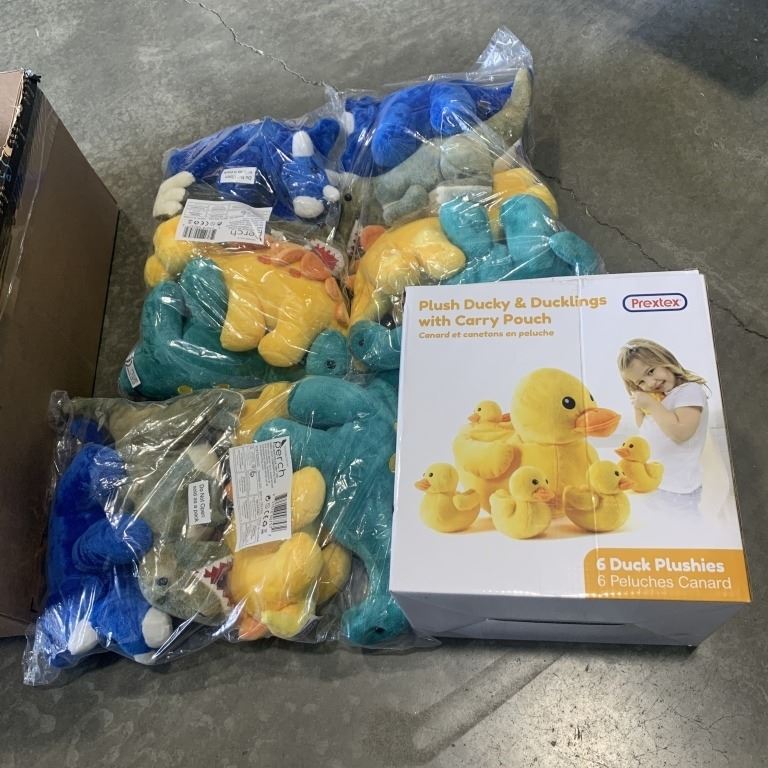 DUCK WITH DUCKLINGS AND DINOSAURS PLUSH ANIMALS
