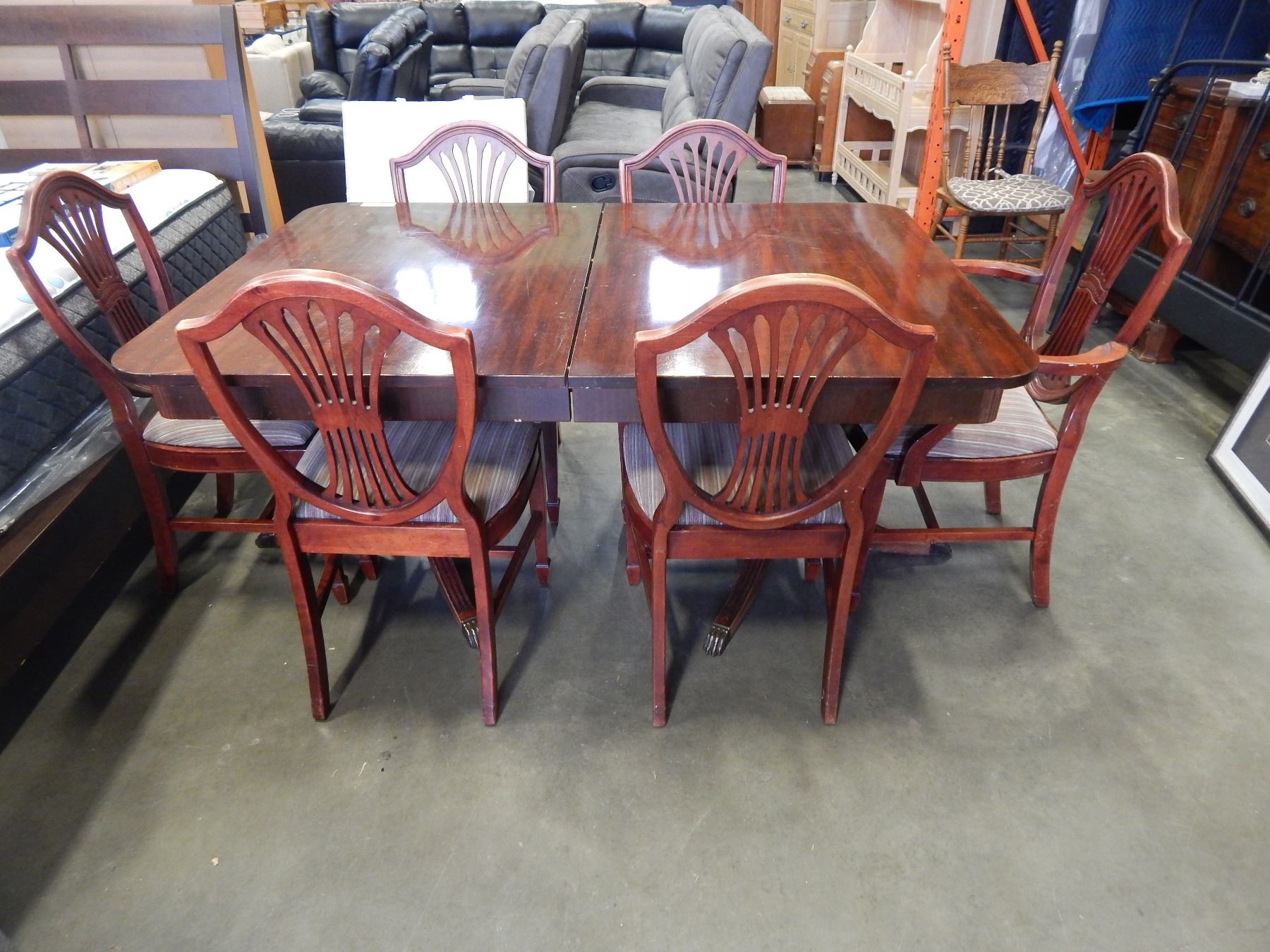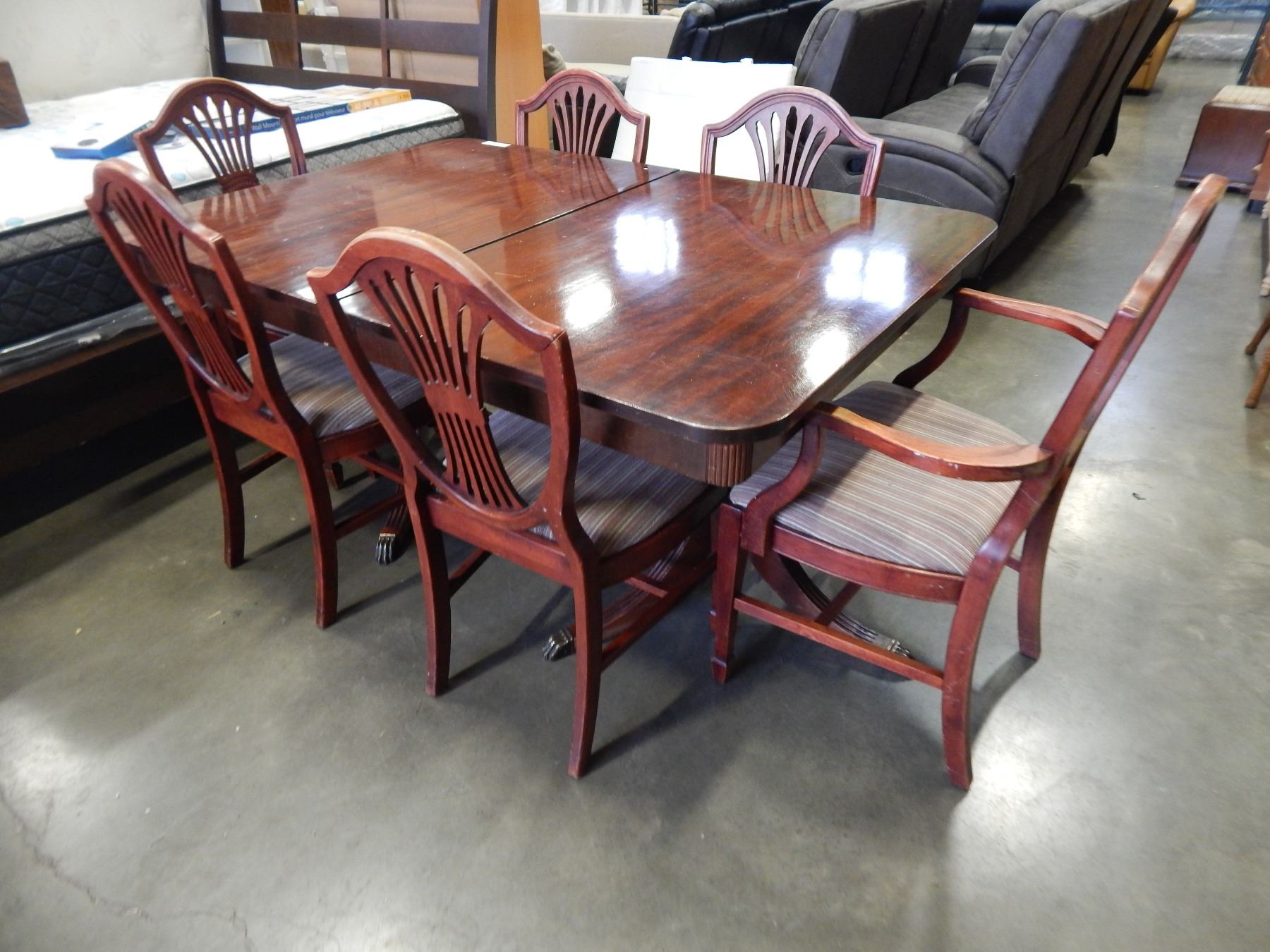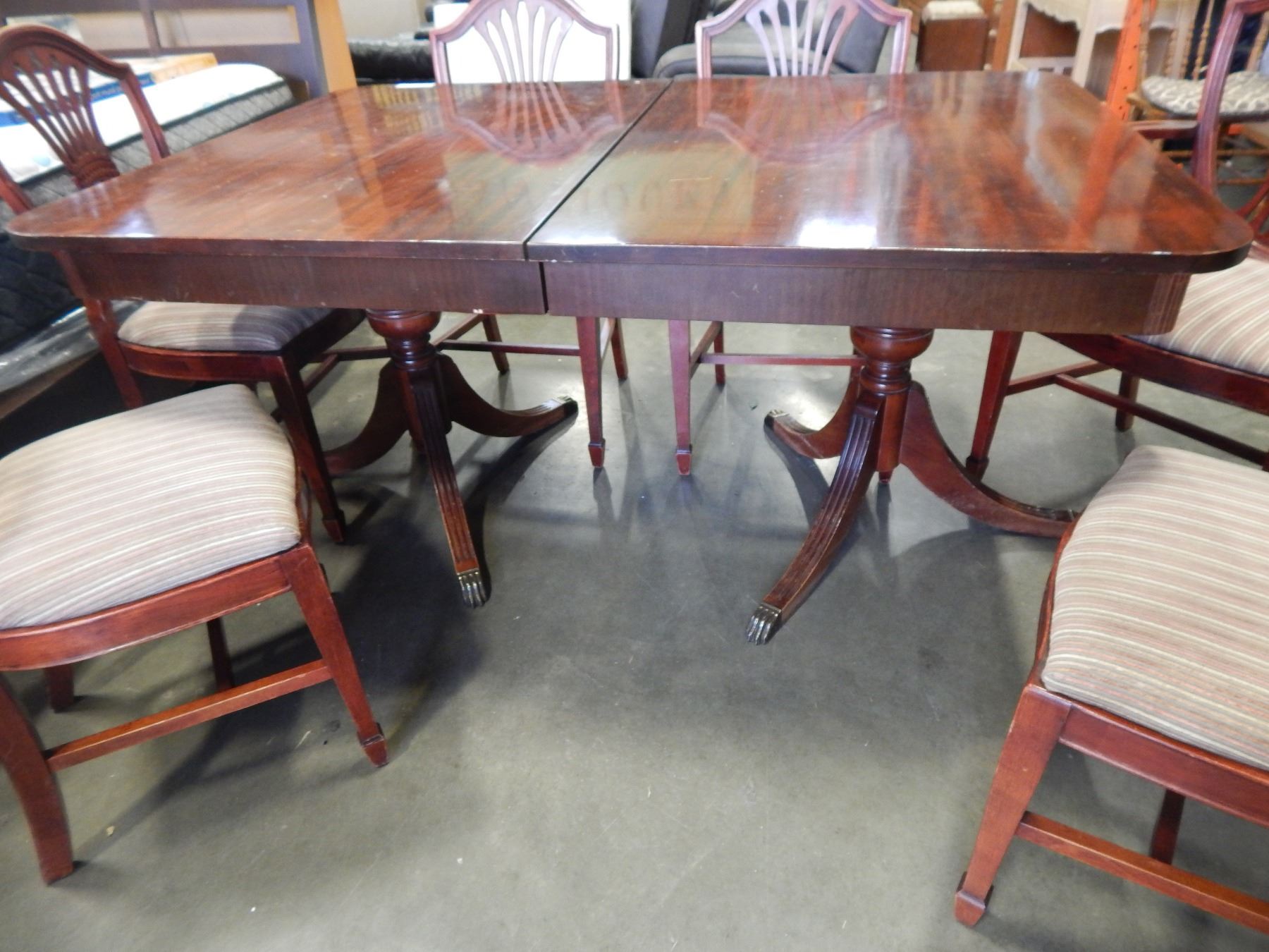 DUNCAN PHYFFE DOUBLE PEDESTAL DINING TABLE W/ JACKKNIFE LEAF AND 6 CHAIRS