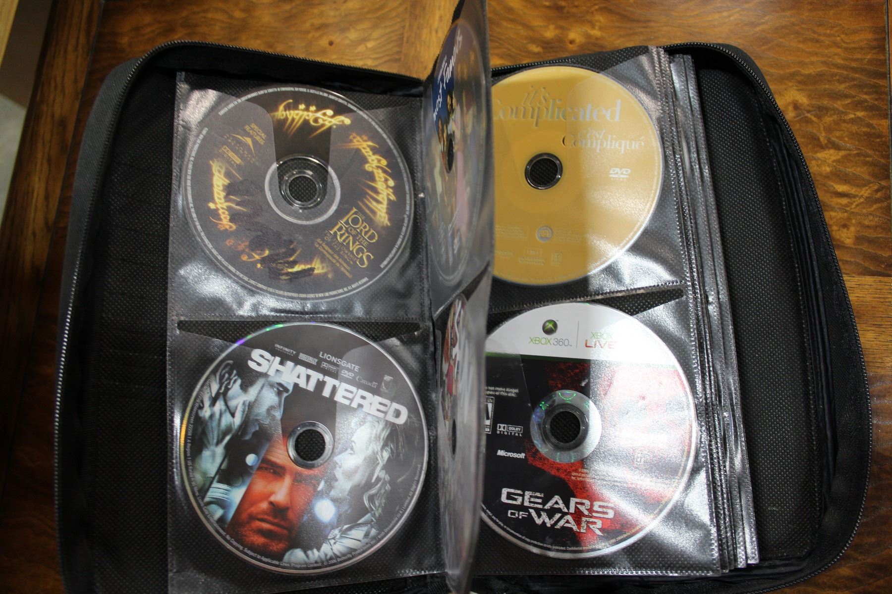 DVD CASE WITH MOVIES AND VIDEO GAMES