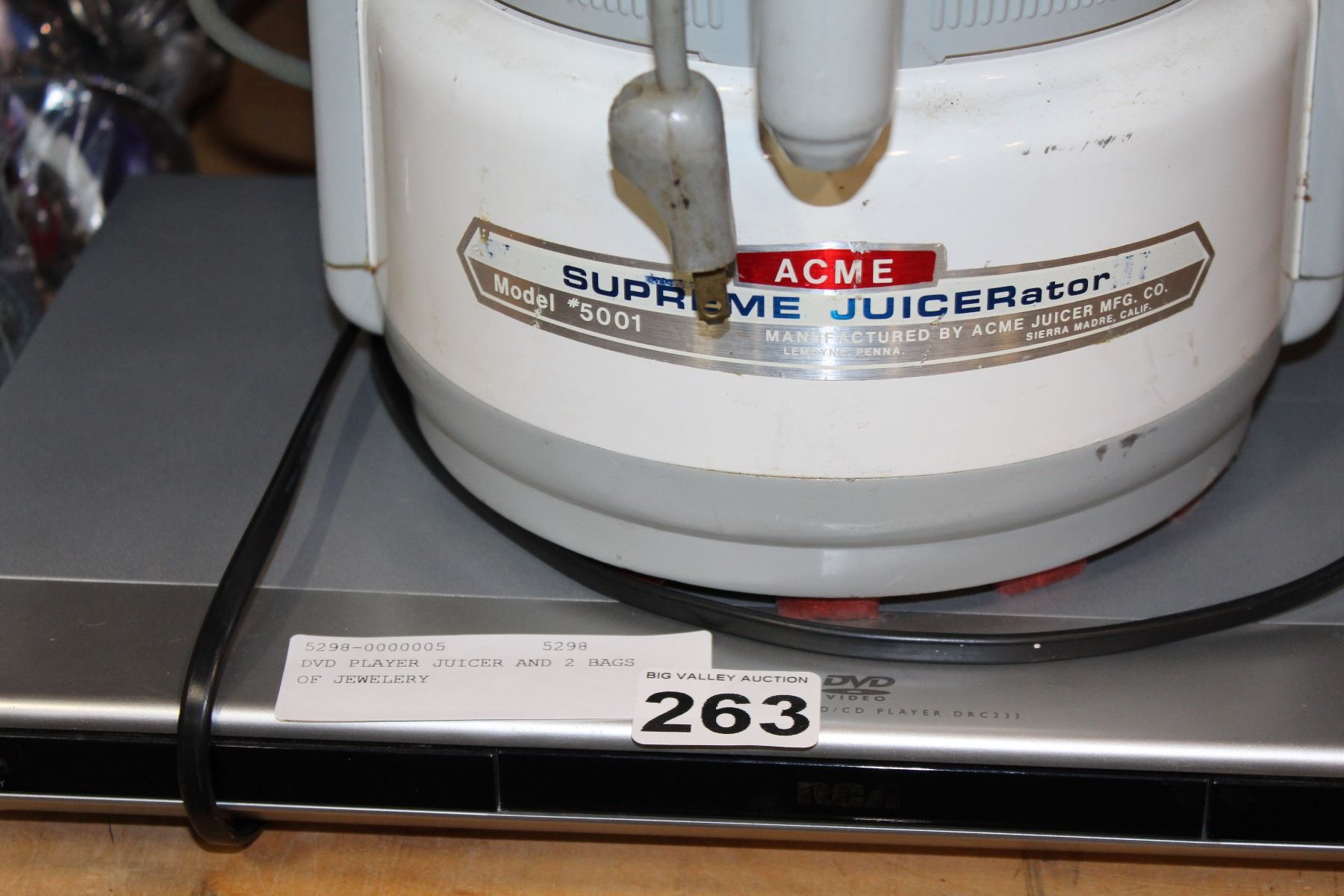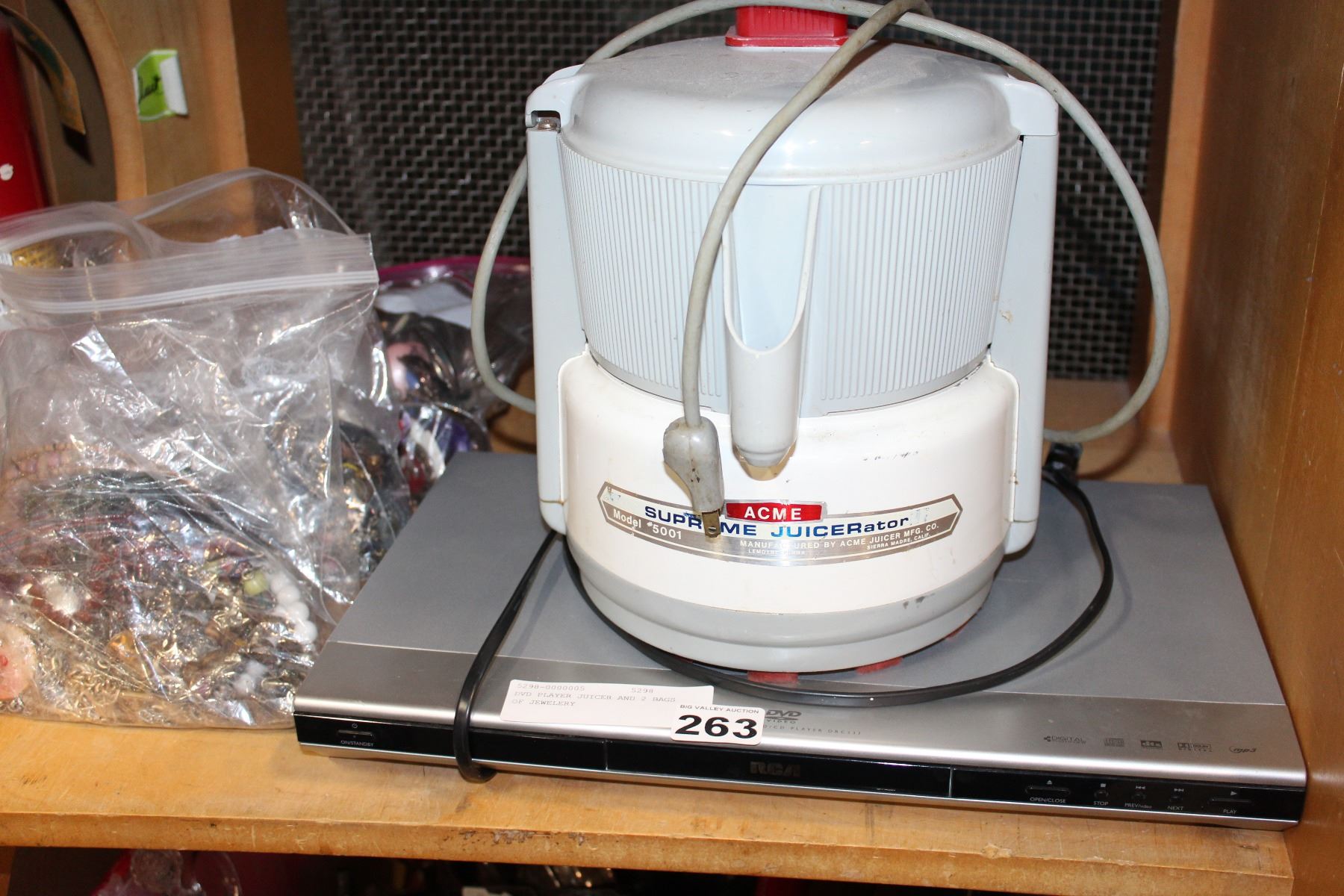DVD PLAYER JUICER AND 2 BAGS OF JEWELERY